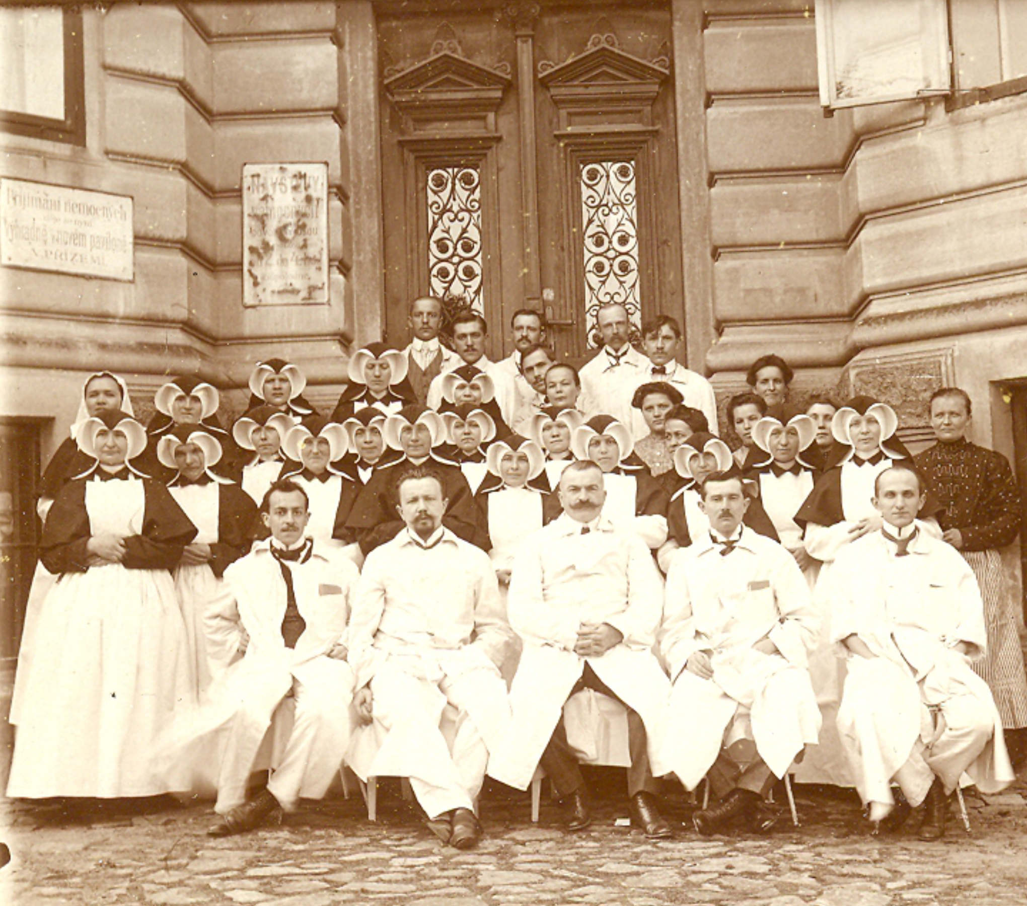 Se vznikem nemocnice roku 1897 požádal okresní úřad kongregaci o uvolnění čtyř řeholnic do funkce ošetřovatelek této nově vzniklé instituce. Jak počet lůžek narůstal (z 135 v roce 1897 na 390 v roce 1928), rostl také počet sester ze čtyř na sedmadvacet.