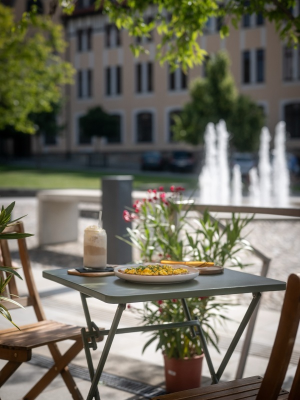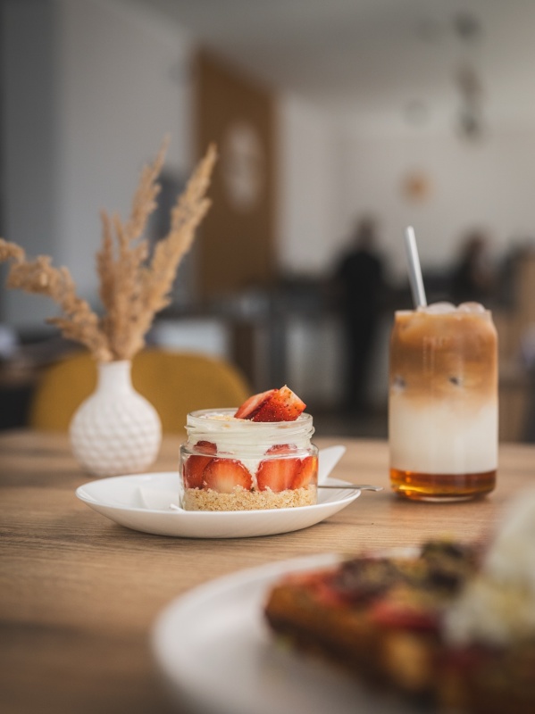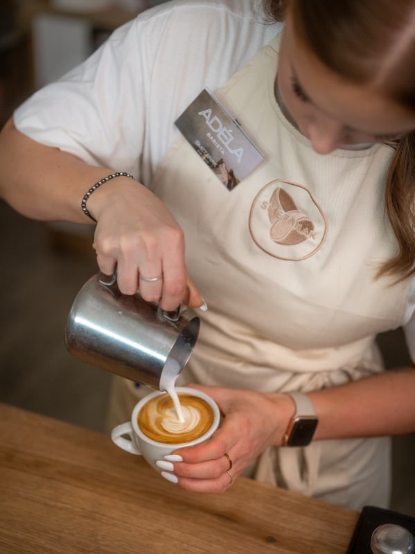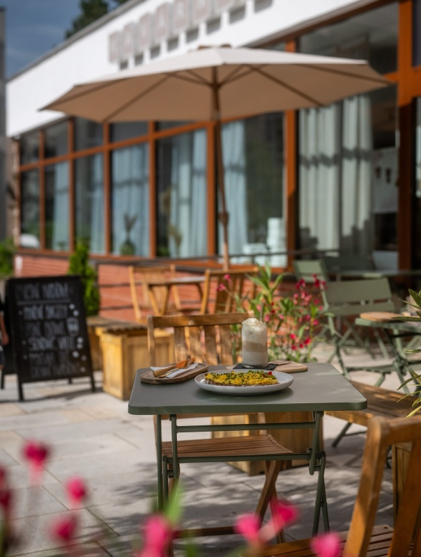 Kavárna je známá svou výbornou kávou a domácími dobrotami, ať už preferujete klasické nebo rostlinné alternativy.