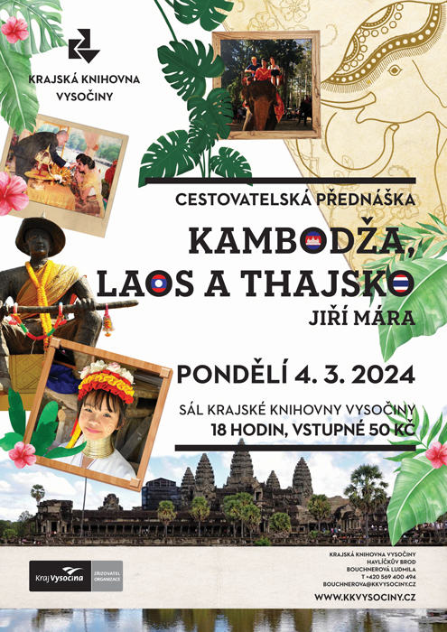 Cestovatelé Alena a Jirka Márovi putovali 40 dní po Indočíně. V pestré projekci představí nádherné barevné chrámy, exotickou přírodu i život obyčejných lidí. Dozvíte se, jaké má člověk pocity při jízdě na slonovi nebo když vám na hlavu skočí opice. Překvapí vás unikátní tržiště na kolejích nebo vodních kanálech. Zjistíte, co všechno se dá vyrobit z krokodýla, jak chutnají pečení pavouci nebo k čemu slouží pálenka z jedovatého hada. Poznáte život dlouhokrkých žen a překvapí vás povinnost mužů zaplatit rodičům za budoucí manželku. Při líčení historek z putování Indočínou se poučíte i pobavíte.