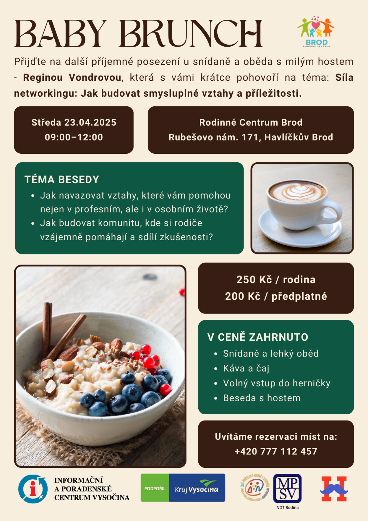 Každý brunch je navíc obohacen o poutavou přednášku/besedu se zajímavým hostem, získáte tedy navíc i cenné informace o tématech, které vás zajímají!