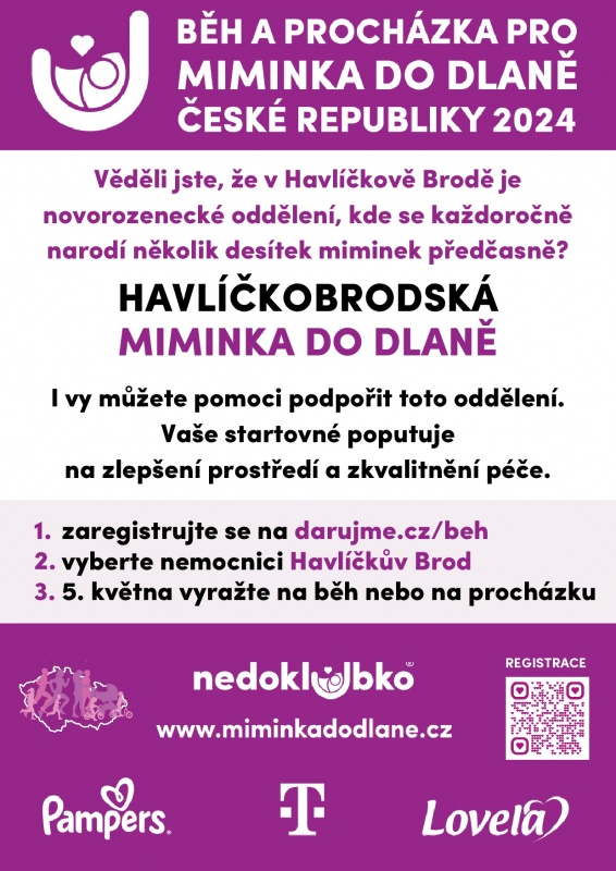 Praha, 11. dubna 2024 – První květnová neděle je dnem rodičů předčasně narozených dětí. U této příležitosti se uskuteční už tradiční charitativní Běh a procházka pro MIMINKA DO DLANĚ České republiky, kterou letos počtvrté pořádá nezisková organizace Nedoklubko. Každý den se v České republice narodí průměrně 23 dětí příliš brzy. Nedoklubko má pro jejich rodiče připravenou ucelenou informační a psychosociální podporu a provází je na jejich cestě s předčasně narozeným miminkem. Ročně tak předá více než 7 000 Léčivých uvítacích balíčků, které rodičům usnadňují první dny a týdny hospitalizace jejich křehkého děťátka.
