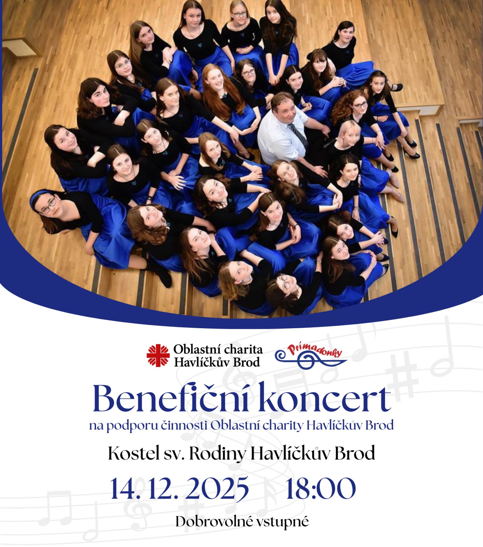 Srdečně Vás zveme na Benefiční koncert, který se uskuteční v neděli 14. prosince 2025 od 18:00 v kostele sv. Rodiny v Havlíčkově Brodě