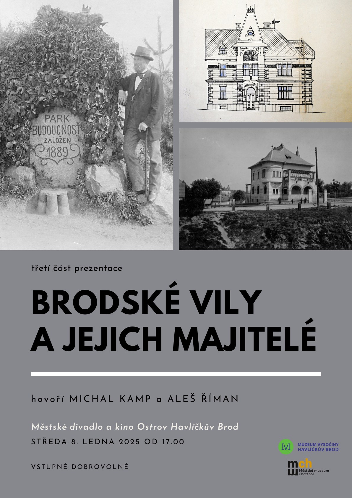 Zveme vás na třetí část přednáškového cyklu věnovaného historii brodských vil a příběhům jejich majitelů. Můžete se těšit na poutavé vyprávění Michala Kampa a doprovodné vstupy Aleše Římana.