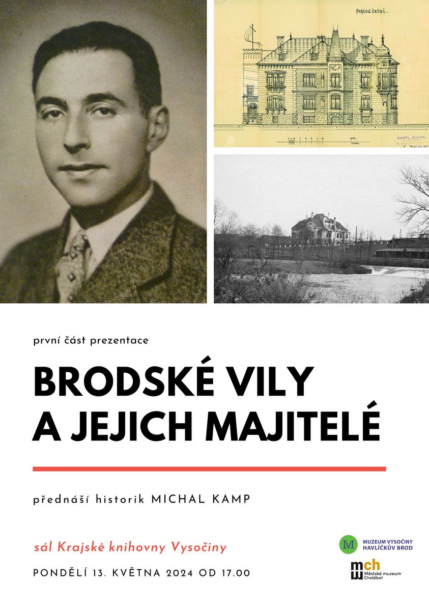 Po dvanácti letech se bude opakovat úspěšná přednáška Michal Kampa o brodských vilách. Osmička důležitých staveb místní novodobé historie je denně míjena obyvateli Brodu, ale pro mnohé zůstává tajemstvím jejich původ. Řeč proto nepadne pouze na vznik a architektonickou podobu kontrétních sídel, ale důraz bude kladen také na první majitele. Právě ti mnohdy utvářeli dějiny celého města a nejeden z jejich životních osudů skončil tragicky. Vily, kterým vtiskli podobu, tak zůstávají důležitými a někdy i jedinými památníky těchto životů.
