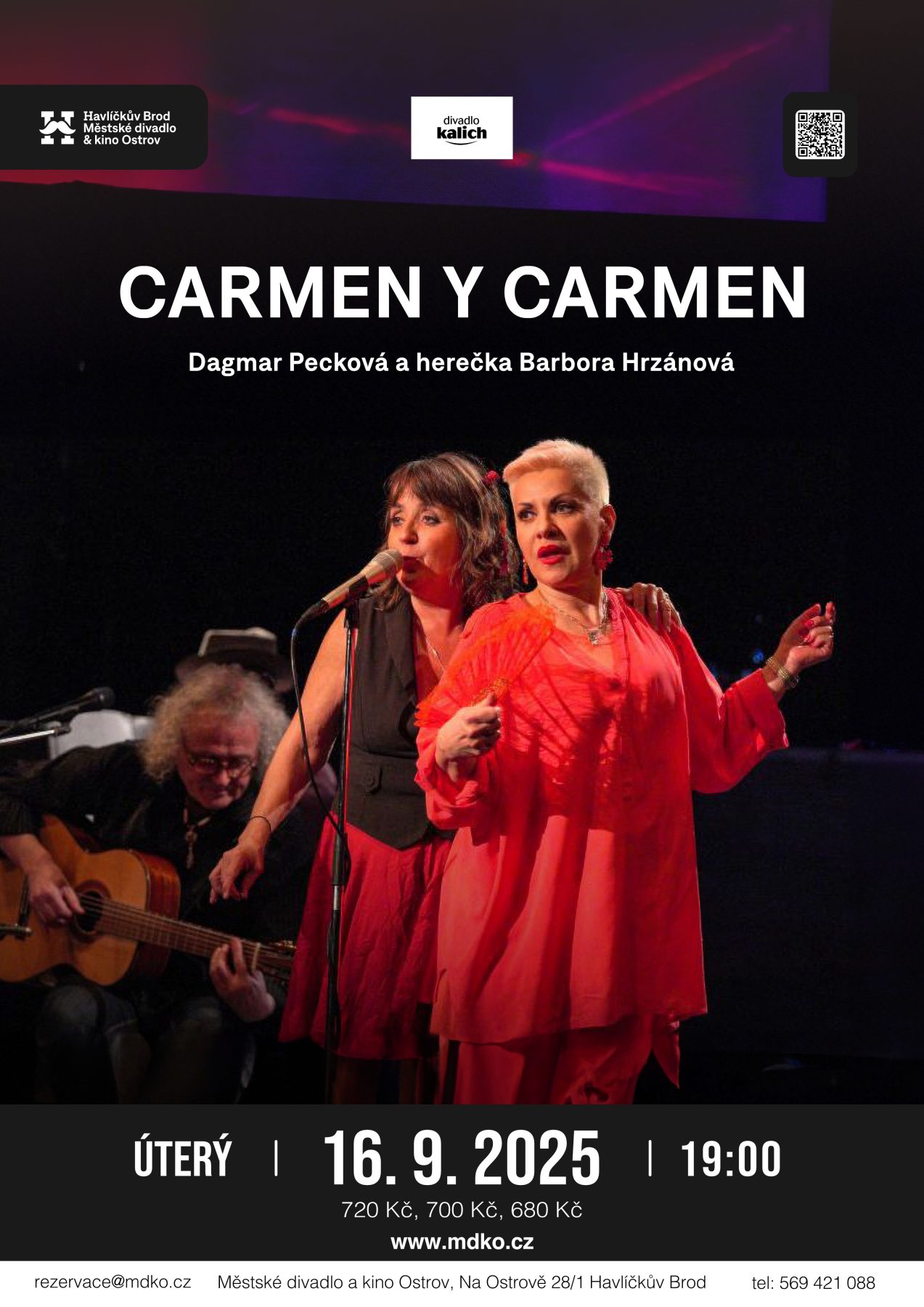 Dvě velké hvězdy svých oborů, operní pěvkyně Dagmar Pecková a herečka Barbora Hrzánová, se scházejí v unikátním představení Carmen Y Carmen, kde obě – každá po svém – ztvární hlavní hrdinku slavné Bizetovy opery. Přímo pro Peckovou a Hrzánovou ho napsal divadelní autor, herec, muzikant a režisér Jan Jiráň.