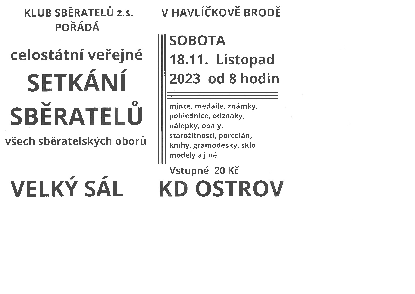 Pořádá: Klub sběratelů Havlíčkův Brod z.s.