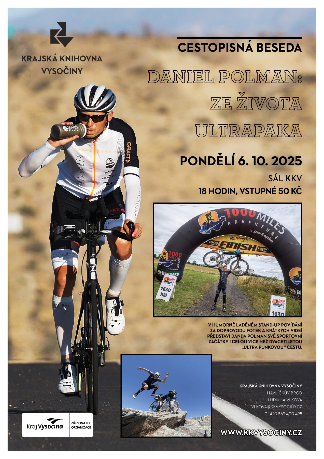 V humorně laděném stand-up povídání za doprovodu fotek a krátkých videí představí Daniel Polman své sportovní začátky i celou více než dvacetiletou „ultra punkovou“ cestu, během které zajel doposud platný rekord 911 km / 24 hodin, zdárně dokončil 5000 km dlouhý Race Across America, absolvoval svůj nejdelší závod North Cape – Tarifa (7400 km), stal se mistrem ČR v MTB maratonu, v rekordním čase vyhrál legendární závod 1000 Miles Adventure, uskutečnil řadu extrémních bike & hike projektů v Alpách, ale prošel si i mnoha pády a těžkými okamžiky.