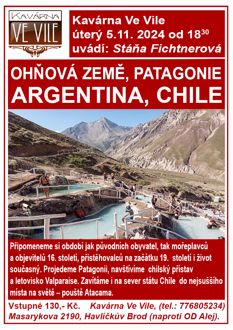Připomeneme si období jak původních obyvatel, tak mořeplavcůa objevitelů 16. století, přistěhovalců na začátku 19. století i život současný. Projedeme Patagonii, navštívíme chilský přístav a letovisko Valparaise. Zavítáme i na sever státu Chile do nejsuššího místa na světě – pouště Atacama.