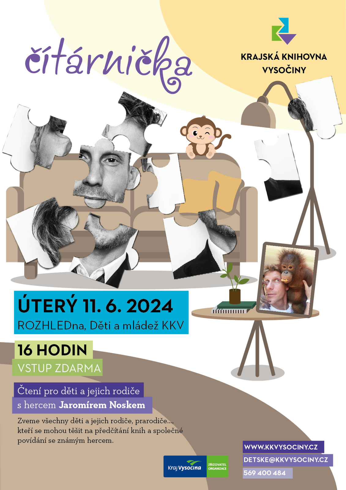 Zveme všechny děti a jejich rodiče, prarodiče…, kteří se mohou těšit na předčítání a společné povídání se známým hercem.