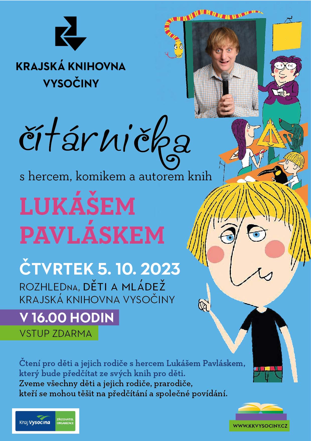 Srdečně zveme všechny děti, jejich rodiče a prarodiče na Čítárničku s hercem, komikem a autorem knih Lukášem Pavláskem. Těšit se můžete na předčítání z jeho knih pro děti a společné povídání.