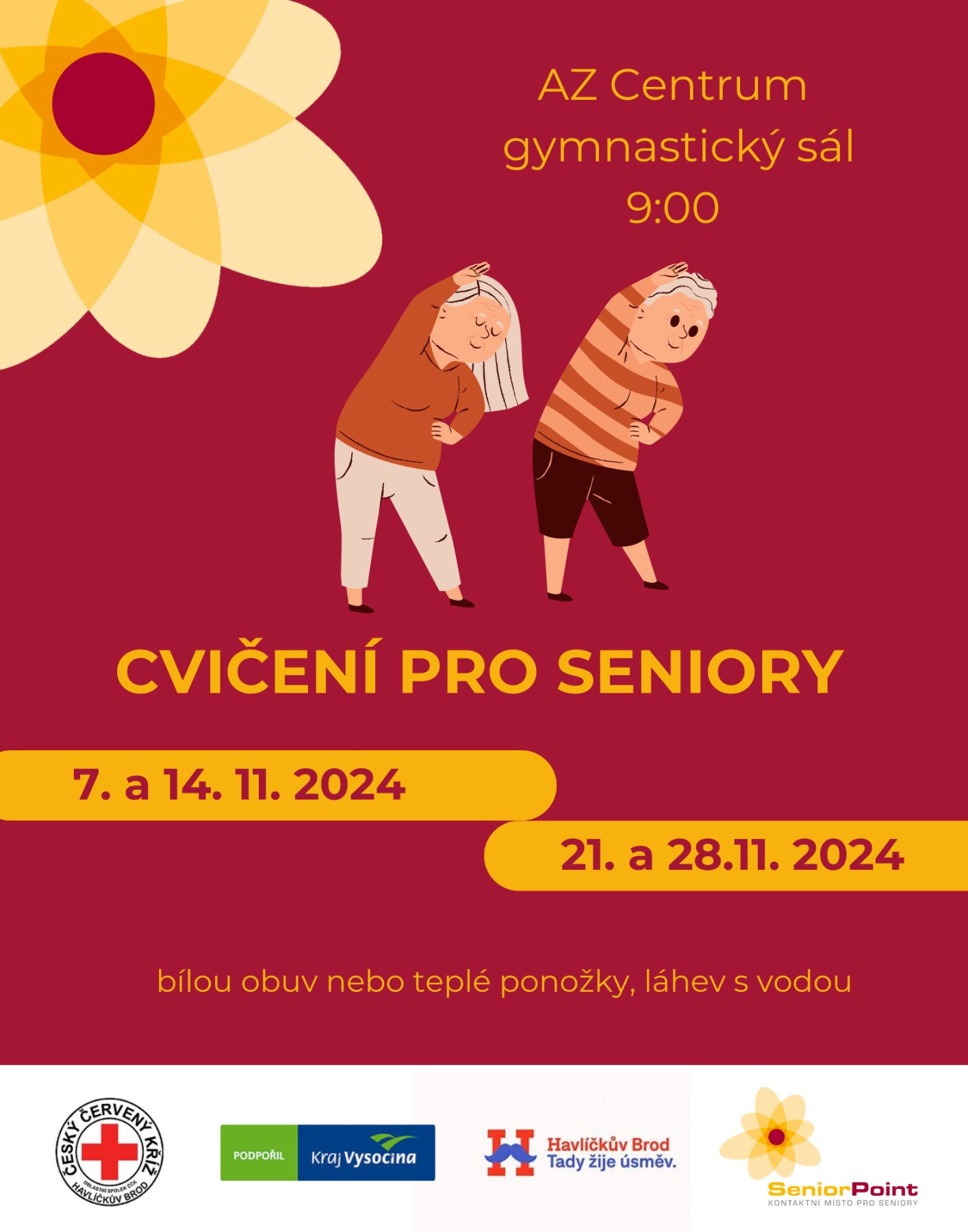 Zveme všechny seniory na pravidelné cvičení zaměřené na zdraví, pohyblivost a dobrou náladu.