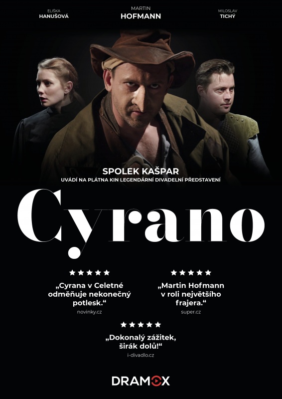 Legenda z Divadla v Celetné. Martin Hofmann exceluje ve své životní roli jako nosatý šermíř z Bergeracu. Jeho Cyrano je fanfarónský, nedůtklivý a hrdý, ale také oddaně milující, zádumčivý a zraněný. Mimořádným hereckým výkonům dává vyniknout minimalistická scéna, která nestrhává divákovu pozornost, naopak podporuje skvělý zážitek. Jeden z největších romantických příběhů všech dob hrají v Celetné již 15 let a představení je stále beznadějně vyprodané. Vychutnejte si dramatický příběh plný lásky, který nestárne.