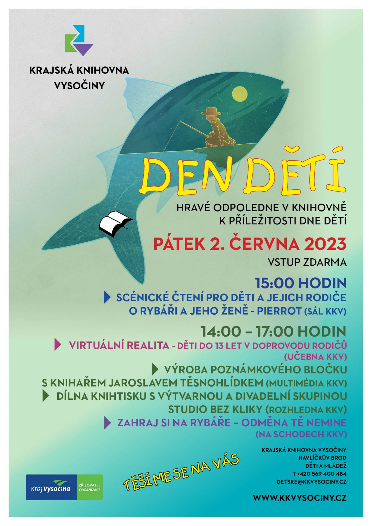 Přijďte oslavit Den dětí do knihovny! Máme pro vás připravený bohatý program. Můžete se těšit na scénické čtení pohádky O rybáři a jeho ženě, na výrobu poznámkového bločku, knihtiskařskou dílnu a hru na rybáře. Navíc si budete moci po celé odpoledne vyzkoušet virtuální realitu.