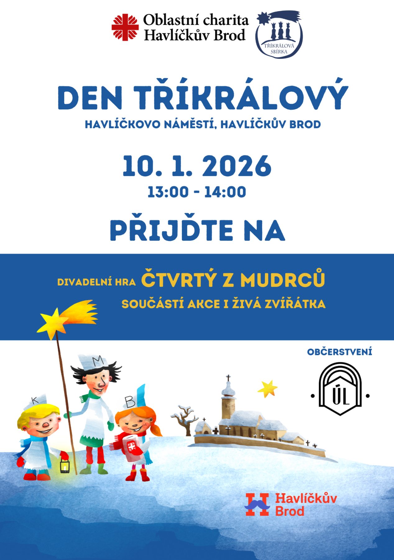 Den Tříkrálový se bude konat 10. ledna 2026 od 13:00 na Havlíčkově náměstí v Havlíčkově Brodě. Můžete se těšit na živá zvířátka ze Zvěřince na statku a výborné občerstvení od Úl baru. Zažijte s námi kouzelnou atmosféru tohoto tradičního svátku!