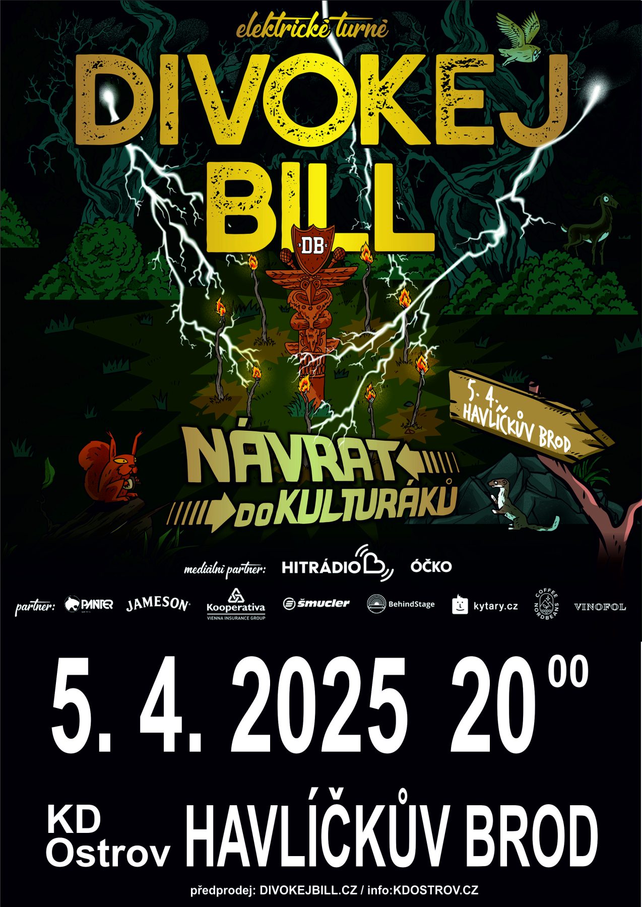 Elektrické turné „Návrat do kulturáků“ bude mít 12 zastávek. Budou to jediné samostatné koncerty kapely Divokej Bill v roce 2025 s plnohodnotným playlistem a stopáží někdy i přes 2 hodiny. Jinak se s kapelou v příštím roce uvidíme pouze na vybraných festivalech.
