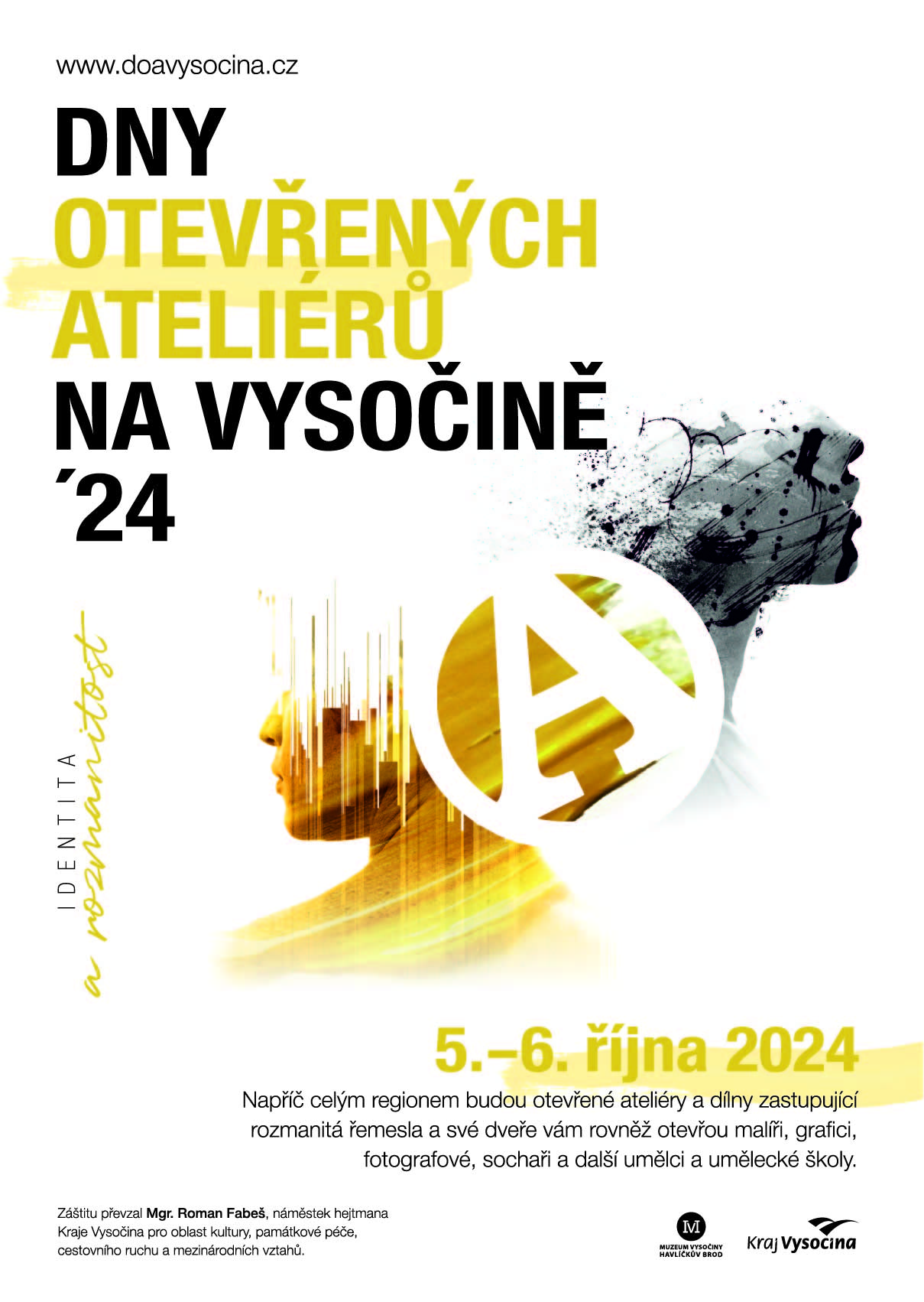 14. ročník Dnů otevřených ateliérů na Vysočině je oslavou umělecké tvořivosti, kulturního dědictví a rozmanitosti našeho kraje. Budete mít možnost nahlédnout do ateliérů umělců, kteří tvoří v různých oblastech výtvarného umění – od malby a sochařství, přes keramiku a textilní umění, až po fotografie a design. Více na https://doavysocina.cz/