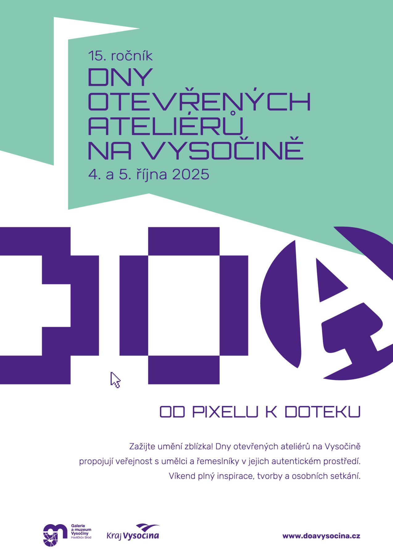 Dny otevřených ateliérů na Vysočině mají v našem kraji již své nezastupitelné místo. Také letos bude první říjnový víkend, 4. a 5. října 2025, naplněn uměním a řemesly a propojí tvůrce s jejich publikem přímo v prostoru, kde umění vzniká. Staňte se opět součástí této podzimní oslavy umění! Téma jubilejního 15. ročníku Dnů otevřených ateliérů na Vysočině je „od pixelu k doteku“ a klade si za cíl zdůraznit kontrast mezi digitálním a skutečným světem a oslavit samotnou podstatu této akce, kterou je právě přímé setkání mezi divákem a umělcem a jeho tvorbou.