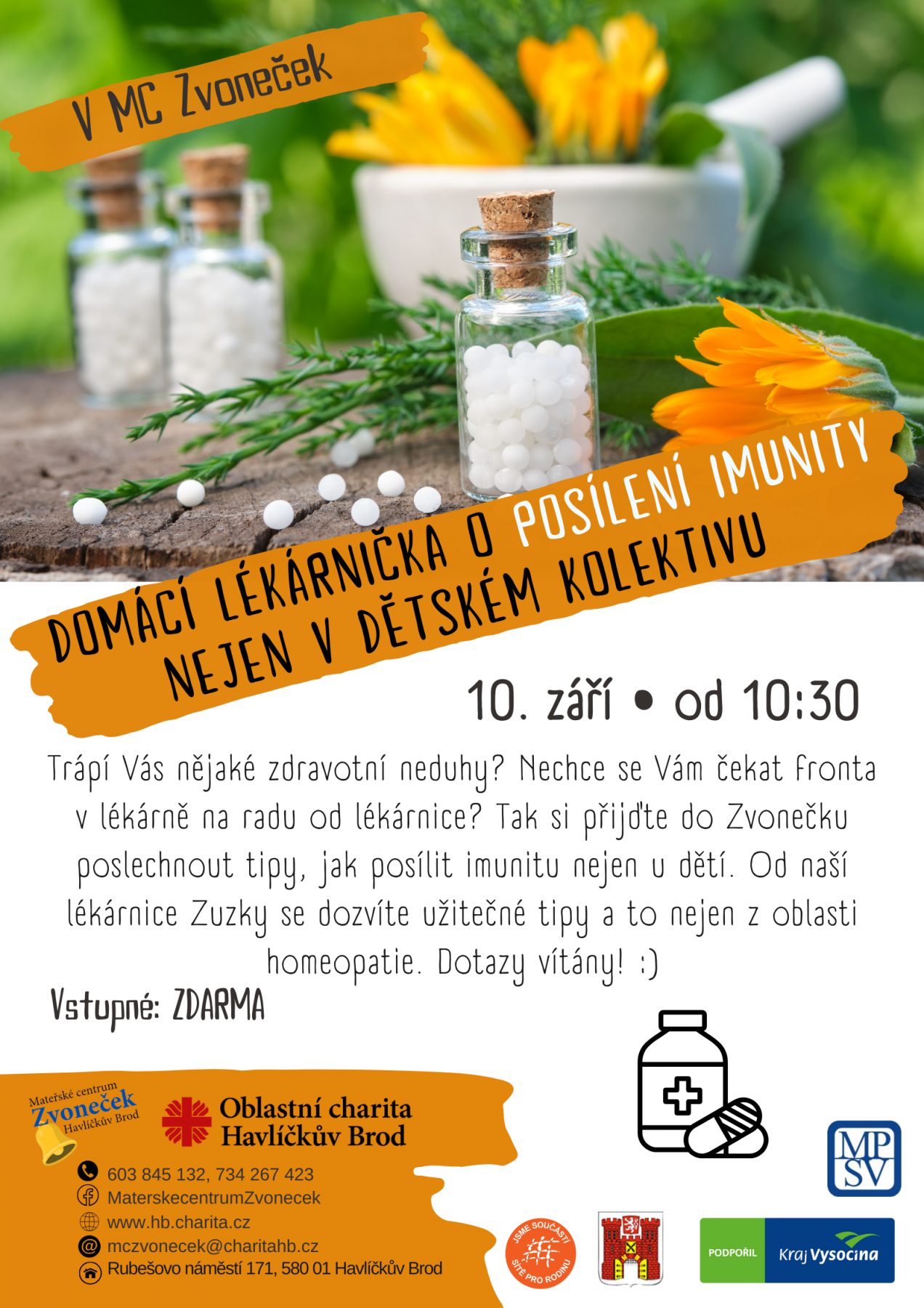 | Pořádá: | Mateřské centrum Zvoneček mczvonecek@charitahb.cz |