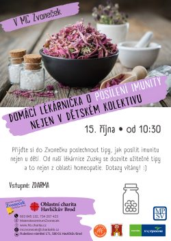 | Pořádá: | Mateřské centrum Zvoneček mczvonecek@charitahb.cz |