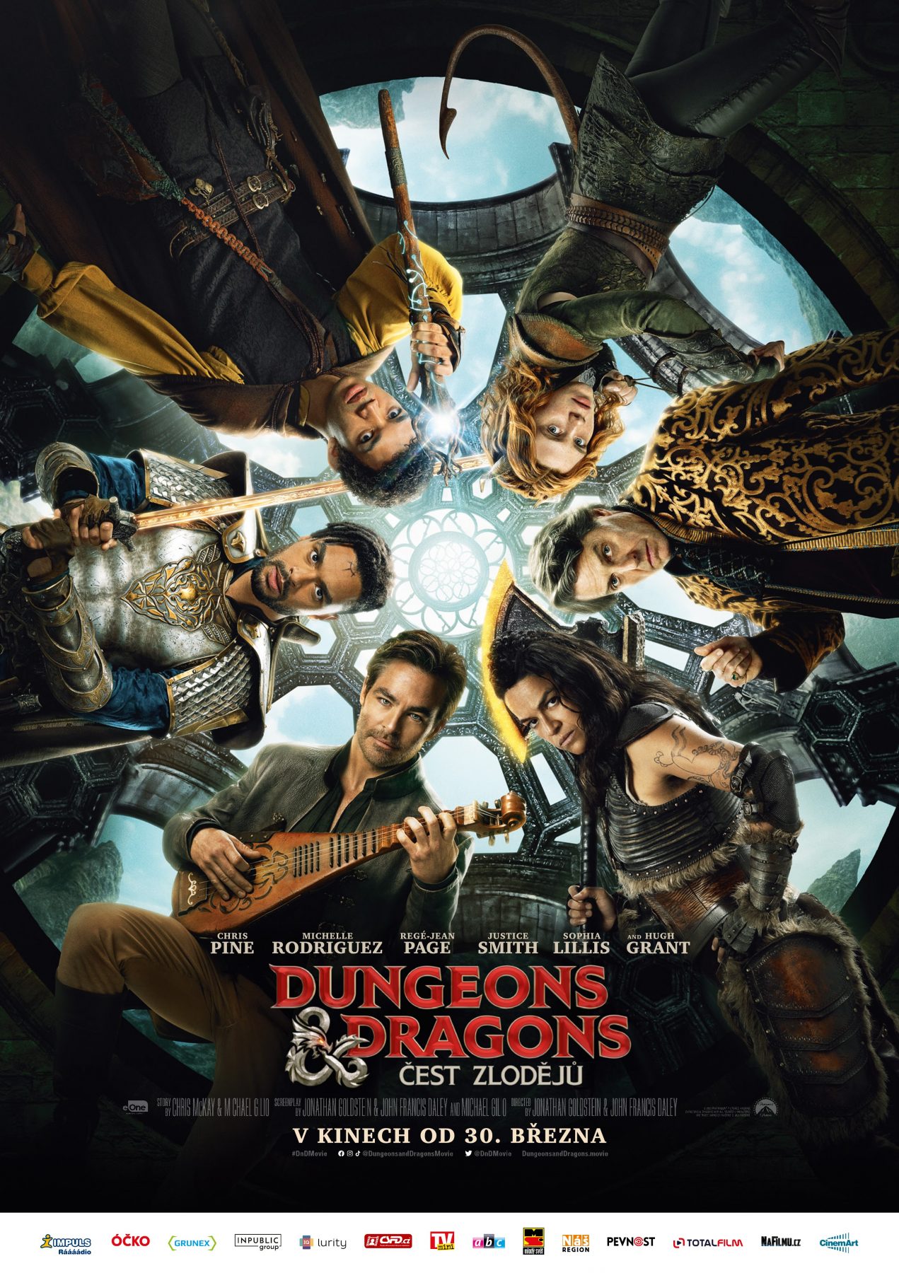 Stručný děj: Potulný zpěvák neboli bard Edgin (Chris Pine) se živí tím, že se svou partou zlodějíčků pomáhá měnit majitele vzácných artefaktů (jednomu ho ukradnou a druhému prodají). Je to práce, při které prakticky neustále strkáte hlavu do oprátky, a ani Edgin nemůže mít věčně kliku. Když se mu podaří šlohnout to, co se nikdy nemělo dostat do nesprávných rukou, a on to navíc do těch rukou dobrovolně vloží, spustí dominový efekt, který může otřást celým světem. Edgin je sice tak trochu zmetek, ale pořád má v sobě kousek cti, a tak se rozhodne napravit, co spískal. Protože však proti němu stojí armáda nelítostných zabijáků, mocných čarodějů a bývalý kamarád Forge Fletcher (Hugh Grant), potřebuje tým, se kterým by mohl mít aspoň nepatrnou šanci v tomhle úkolu obstát. A protože film vychází z legendární hry Dračí doupě, je jasné, že v jeho partě nesmí chybět drsná válečnice (Michelle Rodriguez), ušlechtilý rytíř (Regé-Jean Page), mág (Justice Smith) nebo druidka (Sophia Lillis).