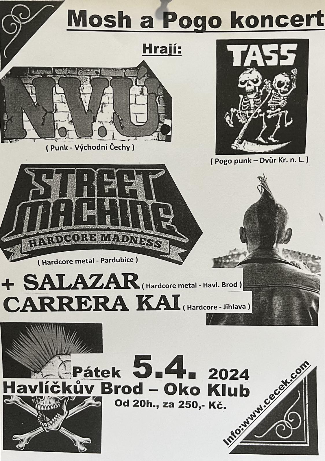 Hrají: N.V.Ú., Street Machine, TASS, Salazar, Carrera Kai. Vstup: 250,- Kč. ( jen na místě ).