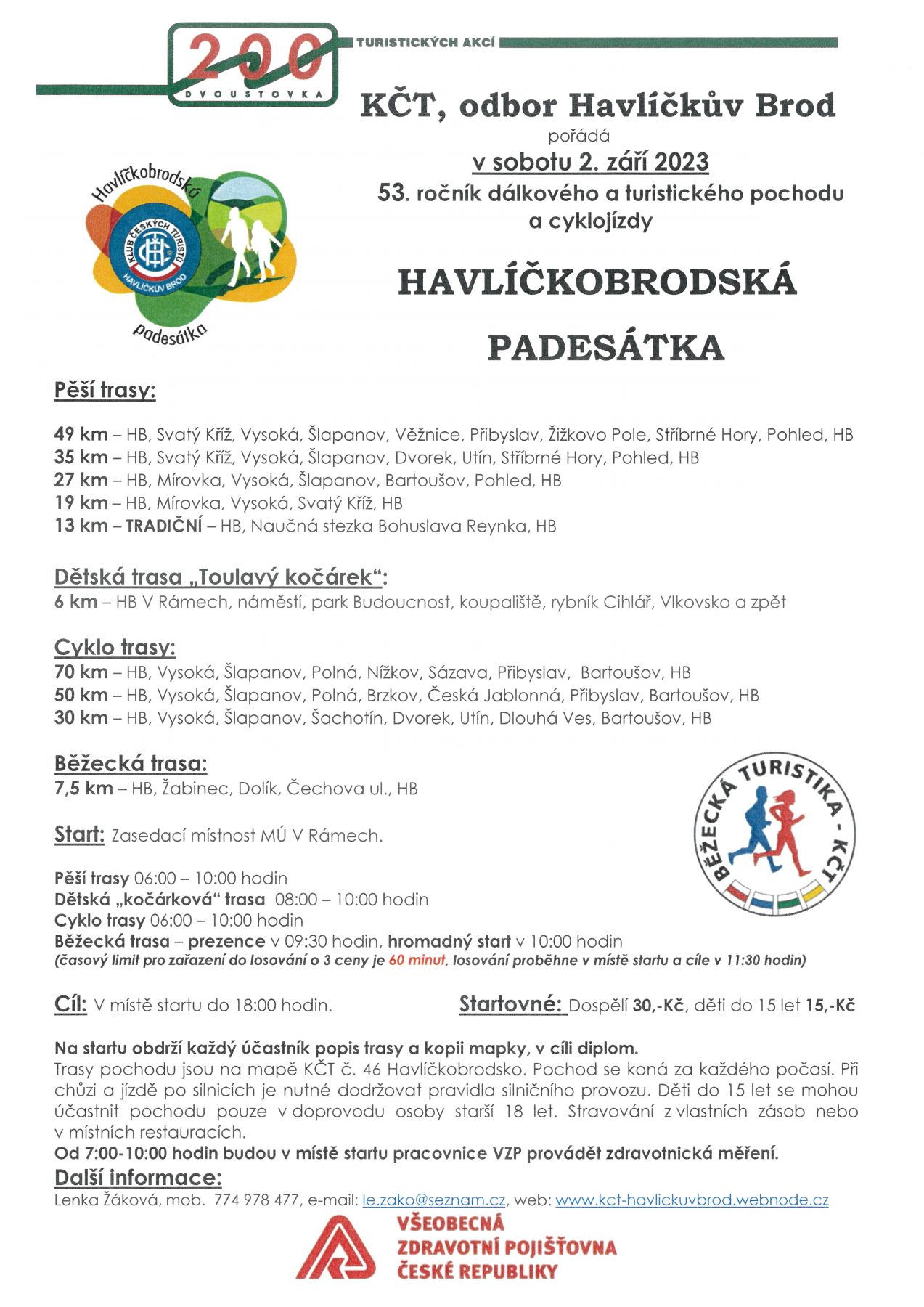| Pořádá: | Klub českých turistů Havlíčkův Brod (Lenka Žáková – předsedkyně) |