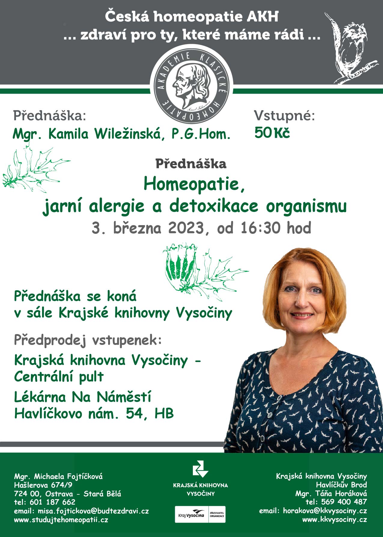 Srdečně vás zveme na přednášku Homeopatie, jarní alergie a detoxikace organismu Mgr. Kamily Wiležinské, P. G. Hom.