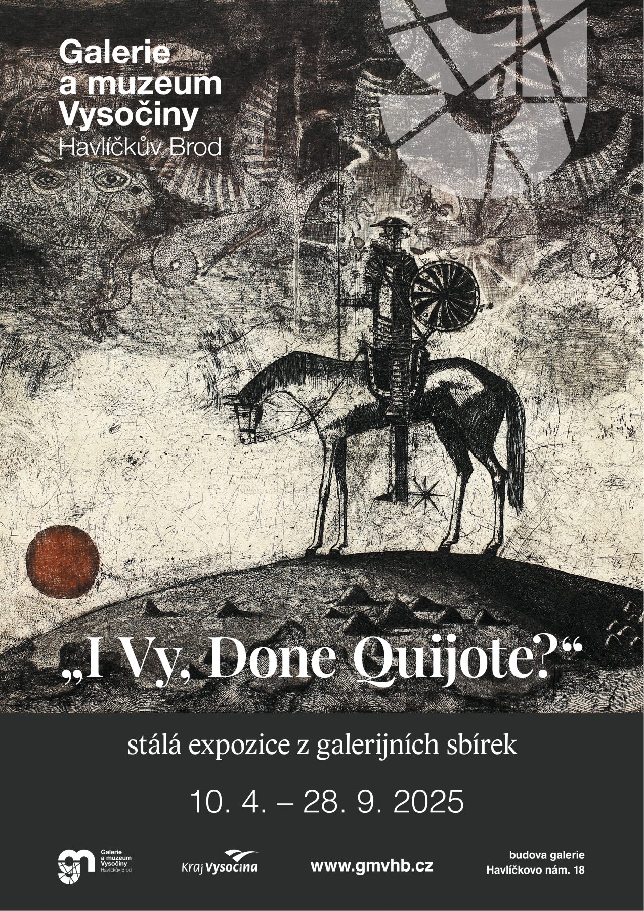 Letošní podoba stálé expozice galerie nazvané „I Vy, Done Quijote?“ odráží fakt, že v letošním roce uplyne již 420 let od prvního vydání této jedinečné knihy světové renesanční literatury. Její děj nám ukazuje více než kdy dříve, že boj s větrnými mlýny není nesmyslné bláznovství a že rytíř Don Quijote, považovaný za blázna, nastavuje zrcadlo společnosti lépe, než mnozí moudří. O hledání základních morálních „rytířských“ hodnot nejen v ilustračních, ale i v obrazových, grafických, kresebných a plastických dílech ze sbírek naší galerie nás přesvědčí kmenoví autoři slavící v tomto roce životní jubileum – Pavel Sukdolák, Oldřich Jelínek, Adolf Born, Miloš Cvach, Mikoláš Axmann či autoři, kteří životní i jiná jubilea oslavili v letech minulých – František Burant, Vladimír Boudník, Ladislav Čepelák, Josef Saska, Jaroslav Šerých, Bohuslav Reynek a mnoho dalších…