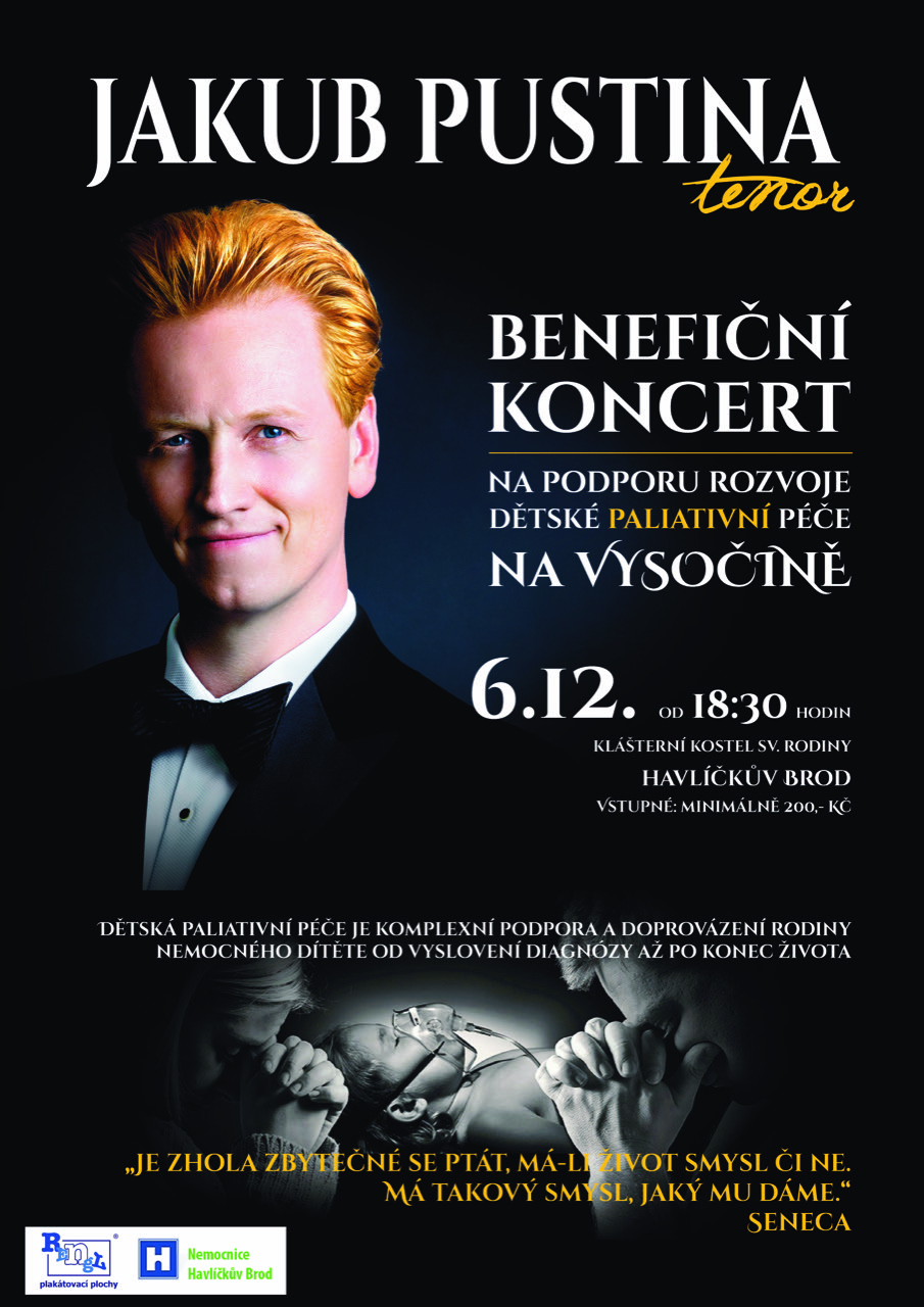 Barytonista Jakub Pustina zazpívá na benefičním koncertě pro dětské oddělení ve středu 6.12.2023 od 18:30 hod. v klášterním kostele svaté Rodiny v Havlíčkově Brodě.
