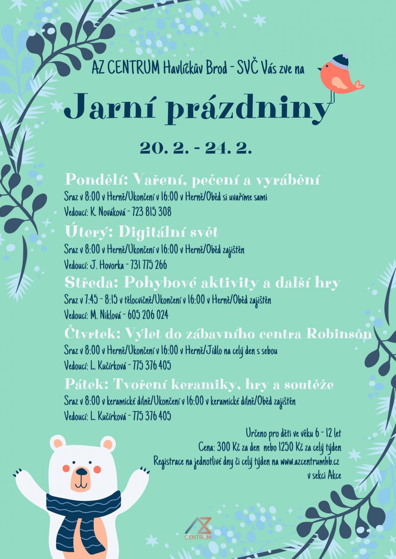 Jarní prázdniny se blíží a my jsme pro děti ve věku 6 - 12 let připravili pestrý program na celý týden od 20. 2. do 25. 2. 2023