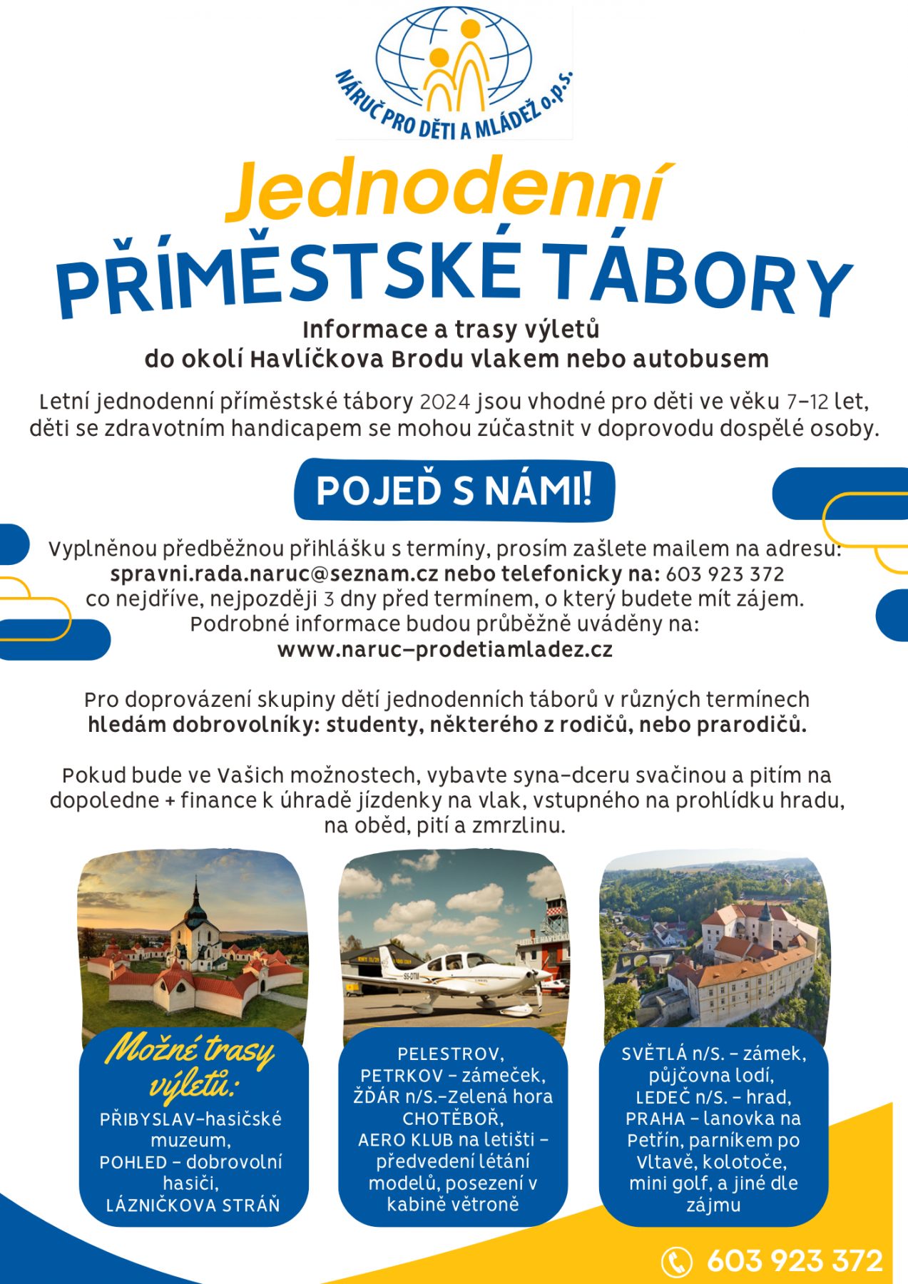 Pro doprovázení skupiny dětí jednodenních táborů v různých termínech hledám dobrovolníky: studenty, některého z rodičů, nebo prarodičů.