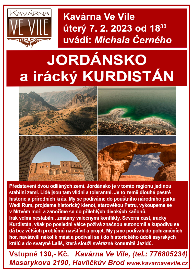 Představení dvou odlišných zemí. Jordánsko je v tomto regionu jedinou stabilní zemí. Lidé jsou tam vlídní a tolerantní. Je to země dlouhé pestré historie a přírodních krás. My se podíváme do pouštního národního parku Wadi Rum, projdeme historický klenot, starověkou Petru, vykoupeme se v Mrtvém moři a zanoříme se do přilehlých divokých kaňonů.