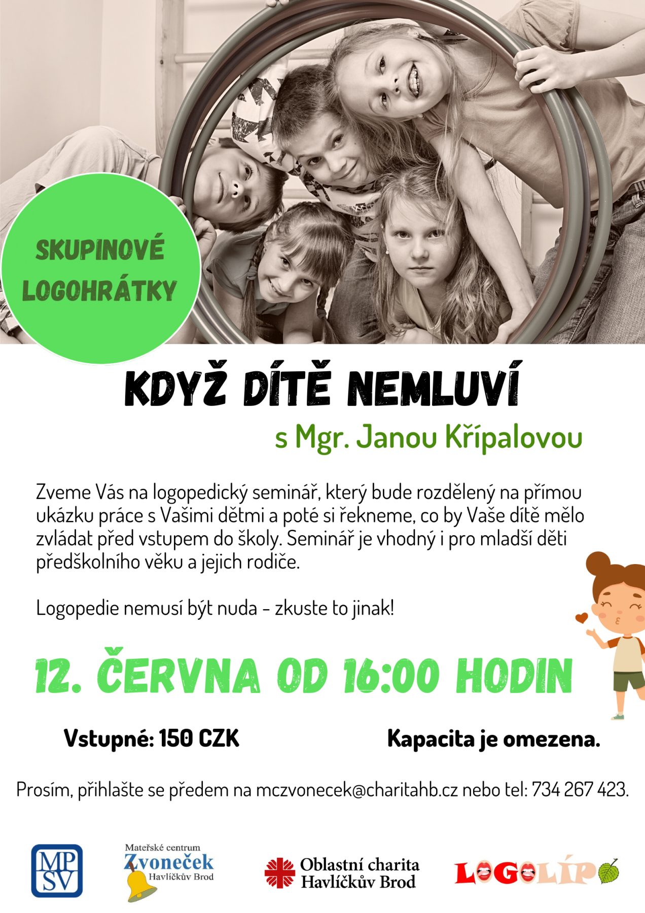 Skupinové logohrátky s poradnou a praktickým nácvikem