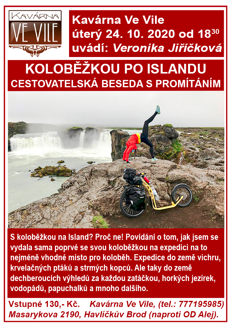S koloběžkou na Island? Proč ne! Povídání o tom, jak jsem sevydala sama poprvé se svou koloběžkou na expedici na tonejméně vhodné místo pro koloběh. Expedice do země vichru,krvelačných ptáků a strmých kopců. Ale taky do zemědechberoucích výhledů za každou zatáčkou, horkých jezírek,vodopádů, papuchalků a mnoho dalšího.