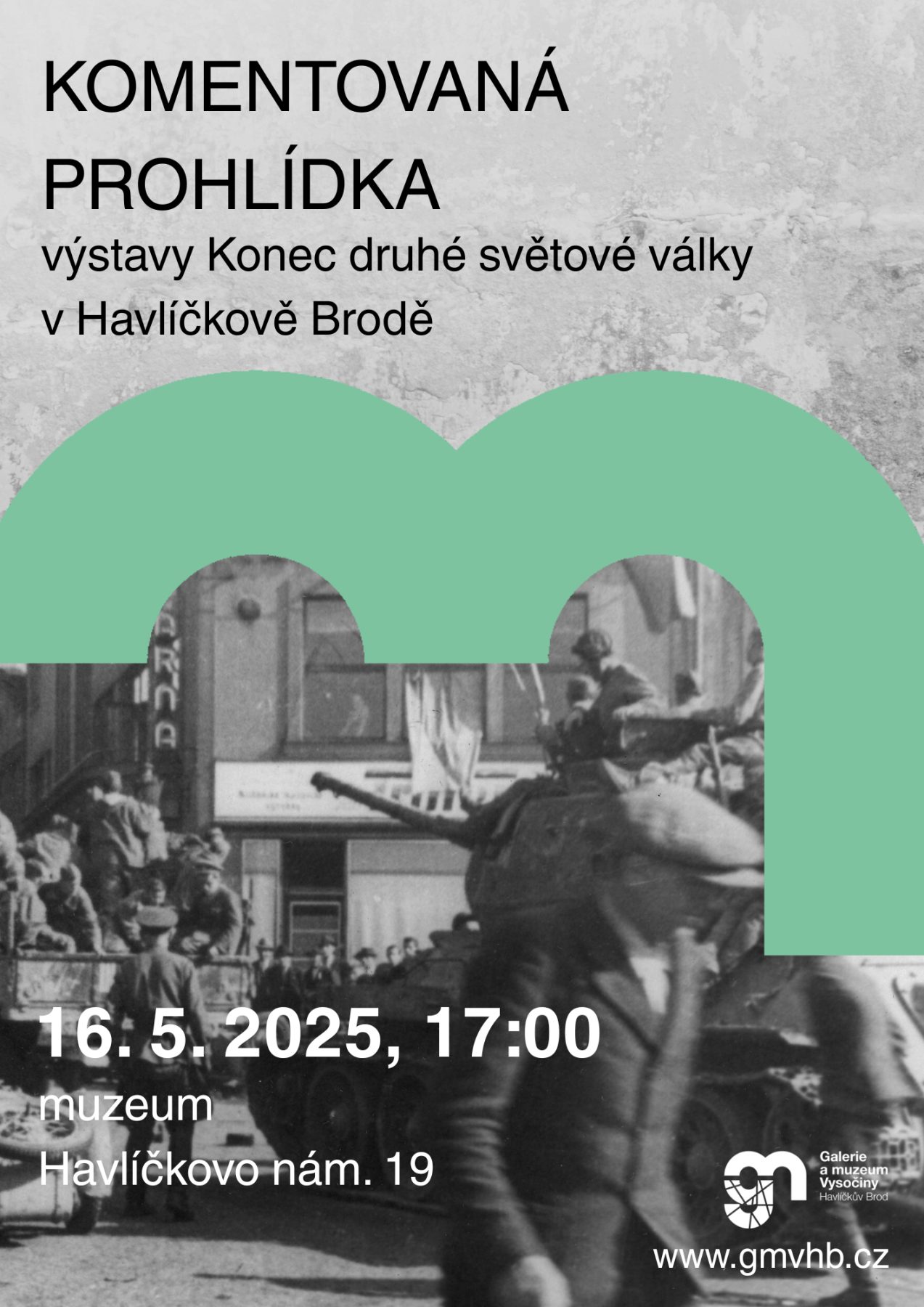 Přijměte pozvání na komentovanou prohlídku výstavy Konec druhé světové války v Havlíčkově Brodě, která se uskuteční 16. května 2025 od 17:00 v muzeu. Prohlídku povedou kurátorky výstavy Mgr. Alena Jindrová a Ing. Věra Fejtová.