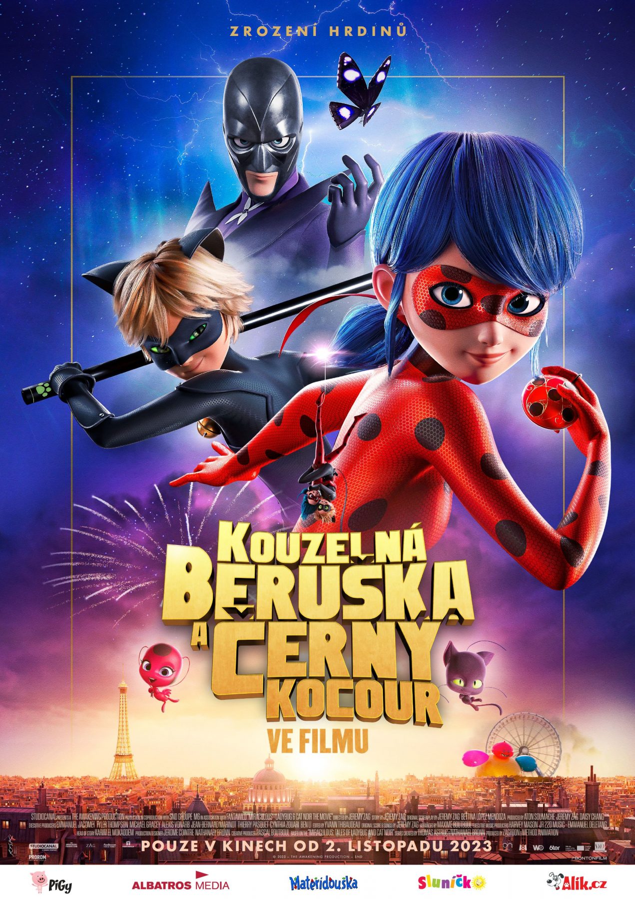 Stručný děj: Celovečerní film Kouzelná Beruška a Černý kocour ukáže zrození superhrdinů, kteří brání Paříž před zlem a kteří si v pěti sériích stejnojmenného seriálu získali srdce milionů diváků a fanoušků po celém světě. Nesmělou holku Marinnette, která se rozkoukává v nové škole, vyberou síly dobra jako tu pravou osobu, jež by měla mít v držení kouzelný drahokam s mocí proměnit člověka v superhrdinu Červenou Berušku. Během první mise potkává Marinnete v katedrále Notre-Dame druhého vyvoleného hrdinu Černého kocoura. Společně zneškodní oživlé a děsivé gotické sochy. Ani jeden netuší, že jsou spolužáci, a jejich hlavním úkolem bude postavit se do cesty mocnému padouchovi Lyšajovi. Každý sám je jako hrdina super, společně by ale mohli být nepřemožitelní.