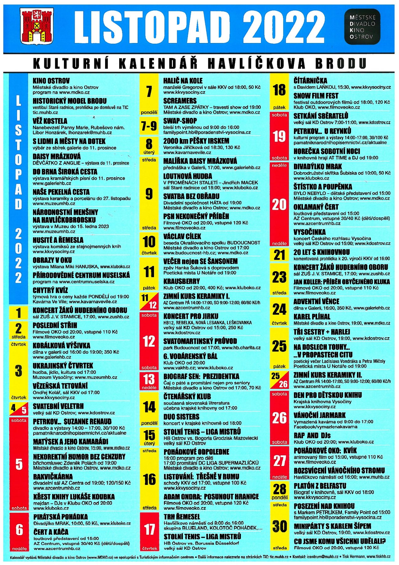 Kulturní kalendář listopad 2022