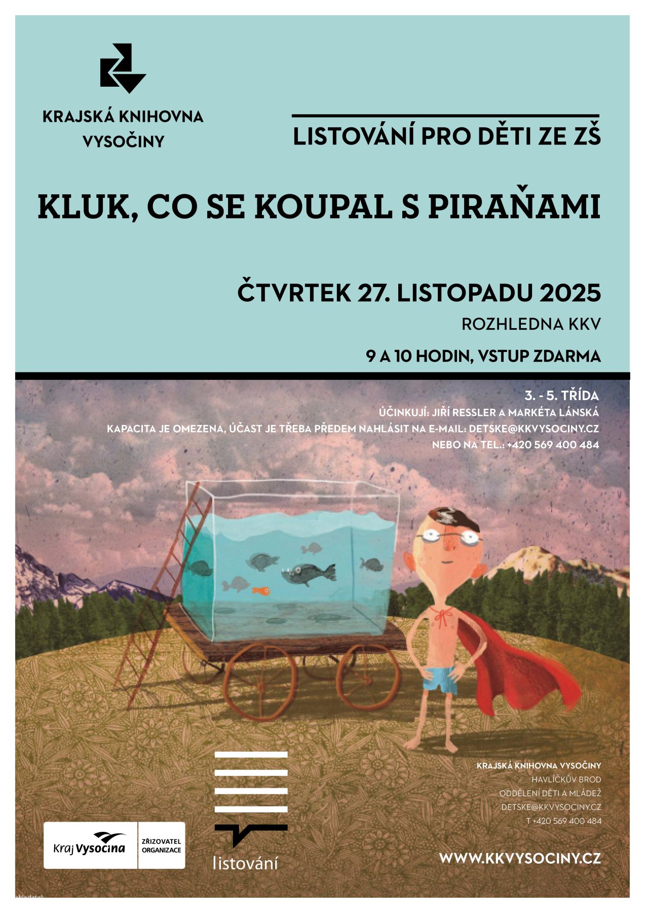 Listování určené pro děti ze základních škol. Dvě představení (od 9:00 a 10:00). Účinkují: Jiří Ressler a Markéta Lánská. Kapacita je omezena, účast je třeba předem nahlásit.