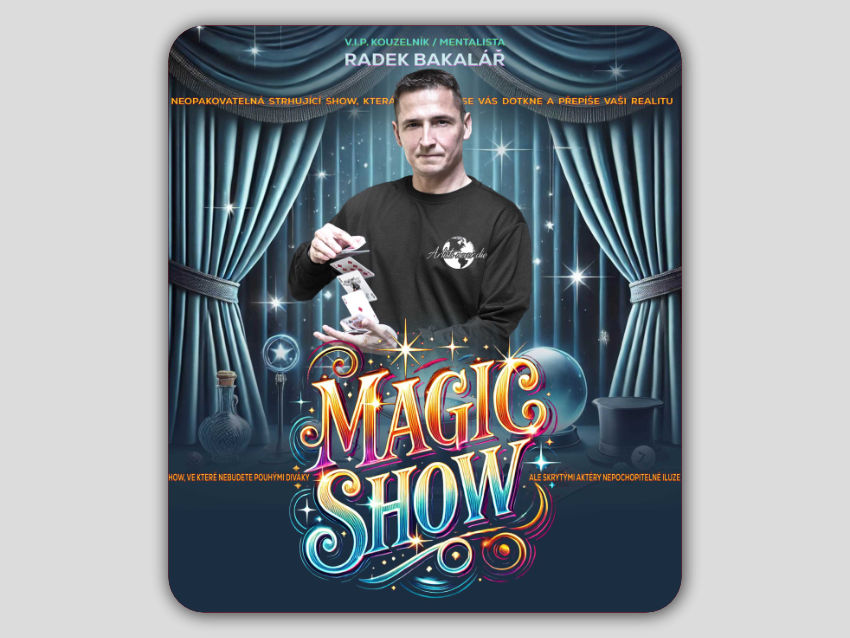 Kouzelník a iluzionista Radek Bakalář, který svými kousky dostal do úzkých snad všechny známé celebrity včetně Libora Boučka, Michala Suchánka, Honzi Dědka, Adély Gondíková nebo např. Terezy Pergnerové se rozhodl vyrazit na turné. Pro diváky si připravil bezmála dvouhodinovou show, ve které zažijí absolutní manipulaci vnímání reality a otočení toho co je a není pravda. Každý divák se stane součástí jeho nepochopitelných iluzí. Díky pořadu MAGIC SHOW na Primě COOL dostával nespočet zpráv, že to, co dělá nejde udělat před živým publikem a že se jedná o kamerové triky. Nejedná, protože si Radek jako dalšího vzácného hosta do MAGIC SHOW vybral vás. Vás všechny, kteří si tuhle jedinečnou šanci nenecháte ujít. Celé představení bude navíc snímáno kamerami a projektováno, takže budete mít jedinečnou možnost vše sledovat doslova z pár centimetrů.