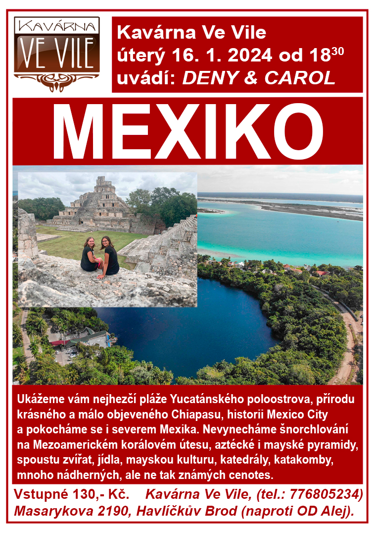 Ukážeme vám nejhezčí pláže Yucatánského poloostrova, přírodu krásného a málo objeveného Chiapasu, historii Mexico City a pokocháme se i severem Mexika. Nevynecháme šnorchlování na Mezoamerickém korálovém útesu, aztécké i mayské pyramidy, spoustu zvířat, jídla, mayskou kulturu, katedrály, katakomby, mnoho nádherných, ale ne tak známých cenotes.