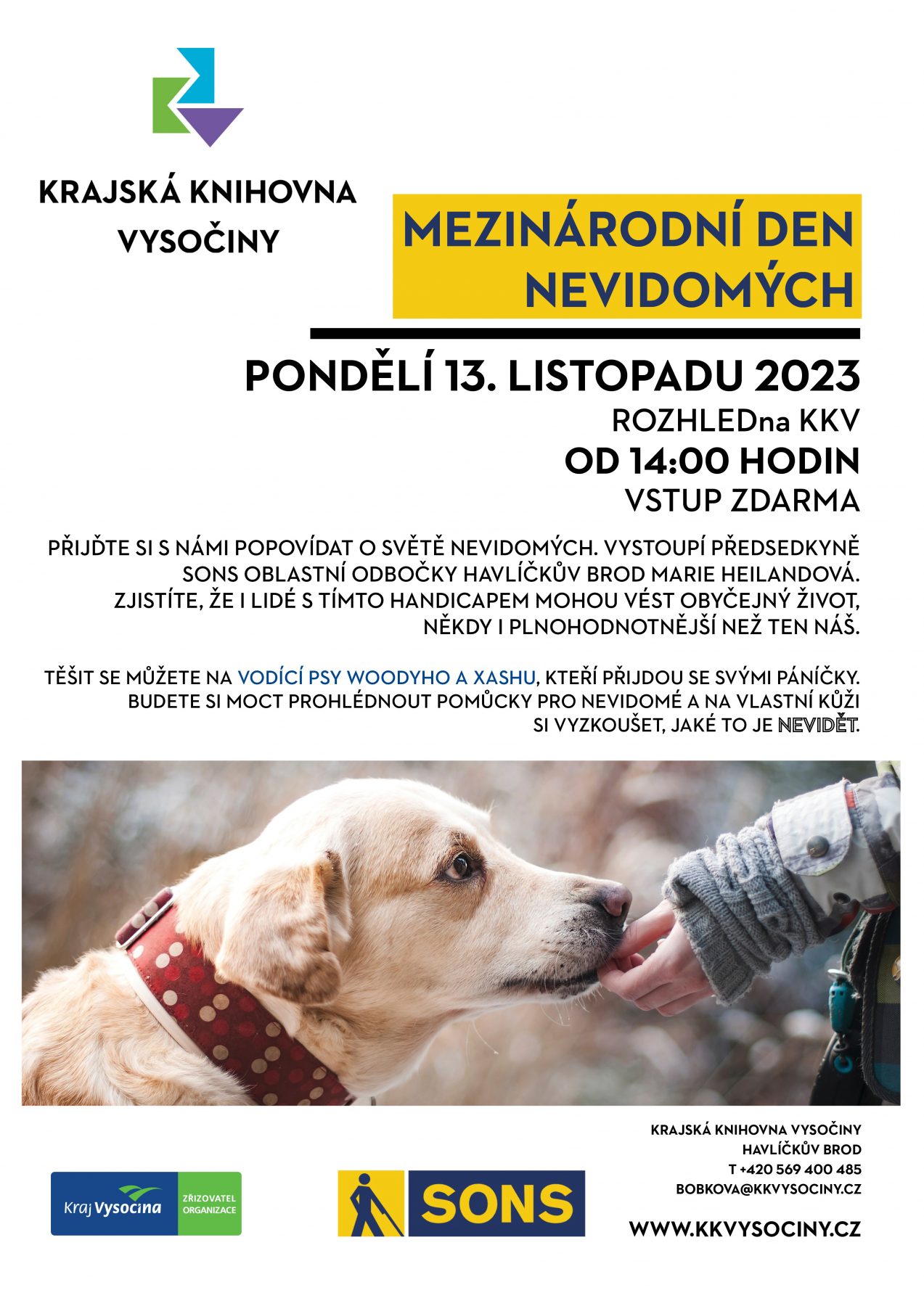 Přijďte si s námi popovídat o světě nevidomých. Vystoupí předsedkyně oblastní odbočky Havlíčkův Brod Marie Heilandová, která představí organizaci SONS a činnost odbočky. Zjistíte, že i lidé s tímto handicapem mohou vést obyčejný život, někdy i plnohodnotnější než ten náš.