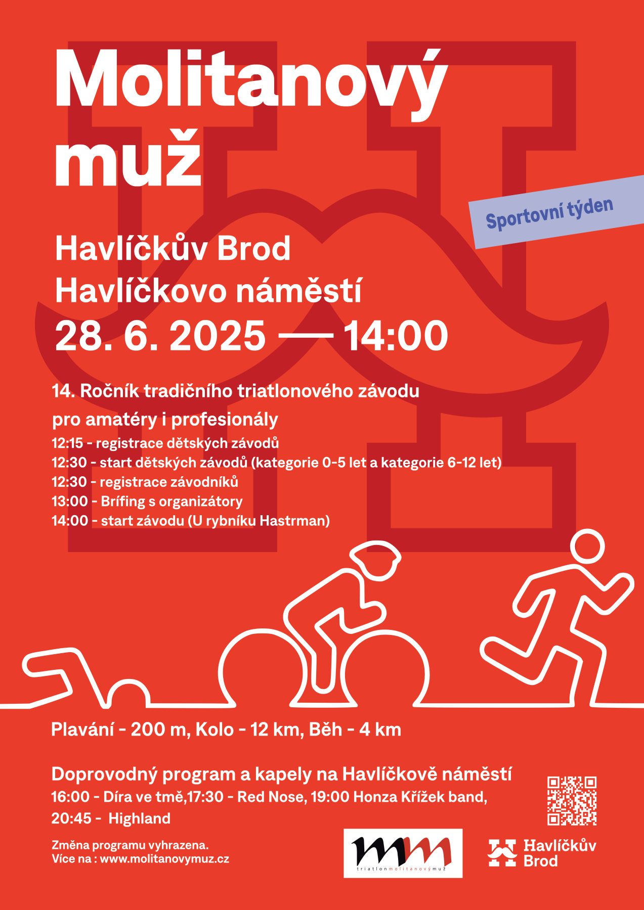 Velkolepé zakončení sportovního června! 14. ročník triatlonového závodu Molitanový muž odstartuje ve 14:00.