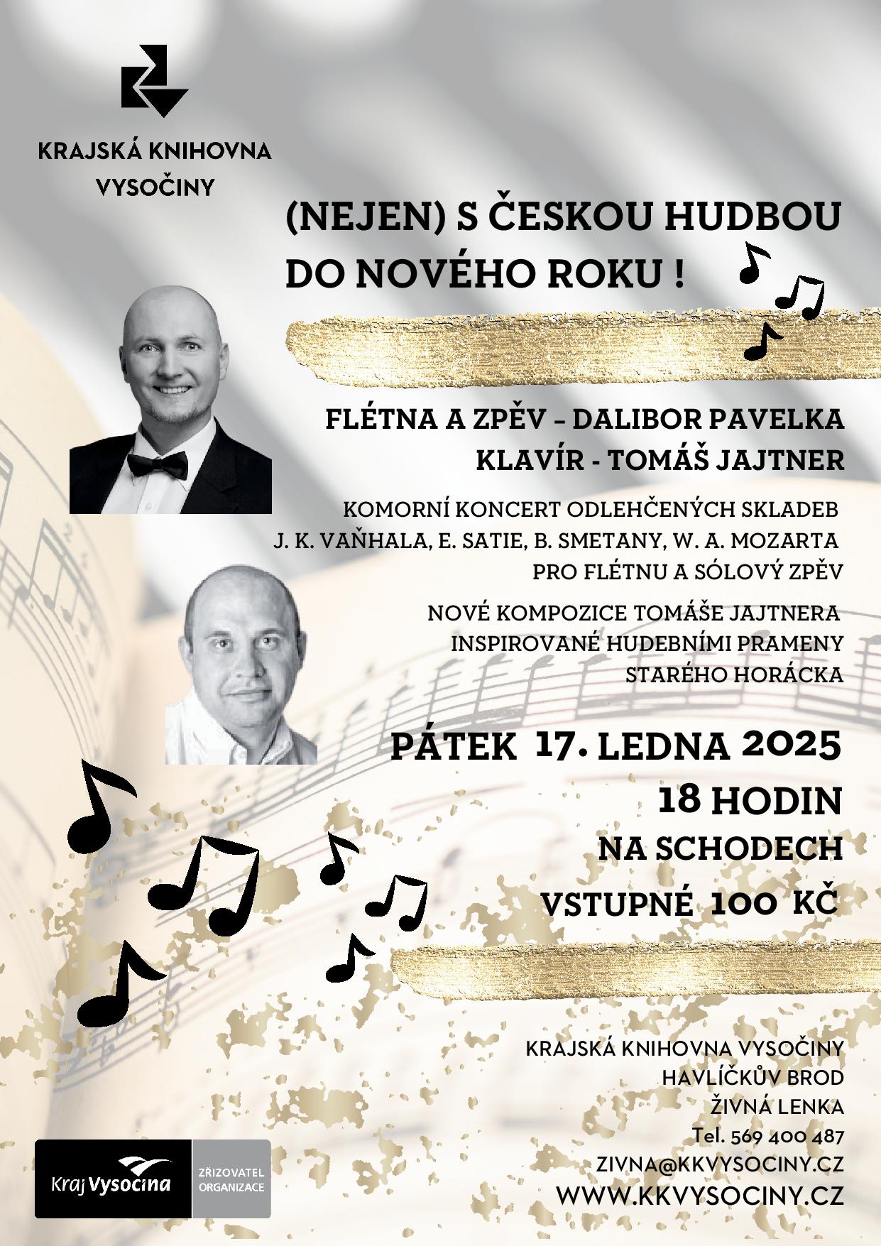 V komorním koncertě představíme několik odlehčených skladeb z českého a světového repertoáru (J. K. Vaňhal, E. Satie, B. Smetana, W. A. Mozart) pro flétnu a sólový zpěv. Uslyšíte také několik nových kompozic Tomáše Jajtnera inspirovaných hudebními prameny starého Horácka.