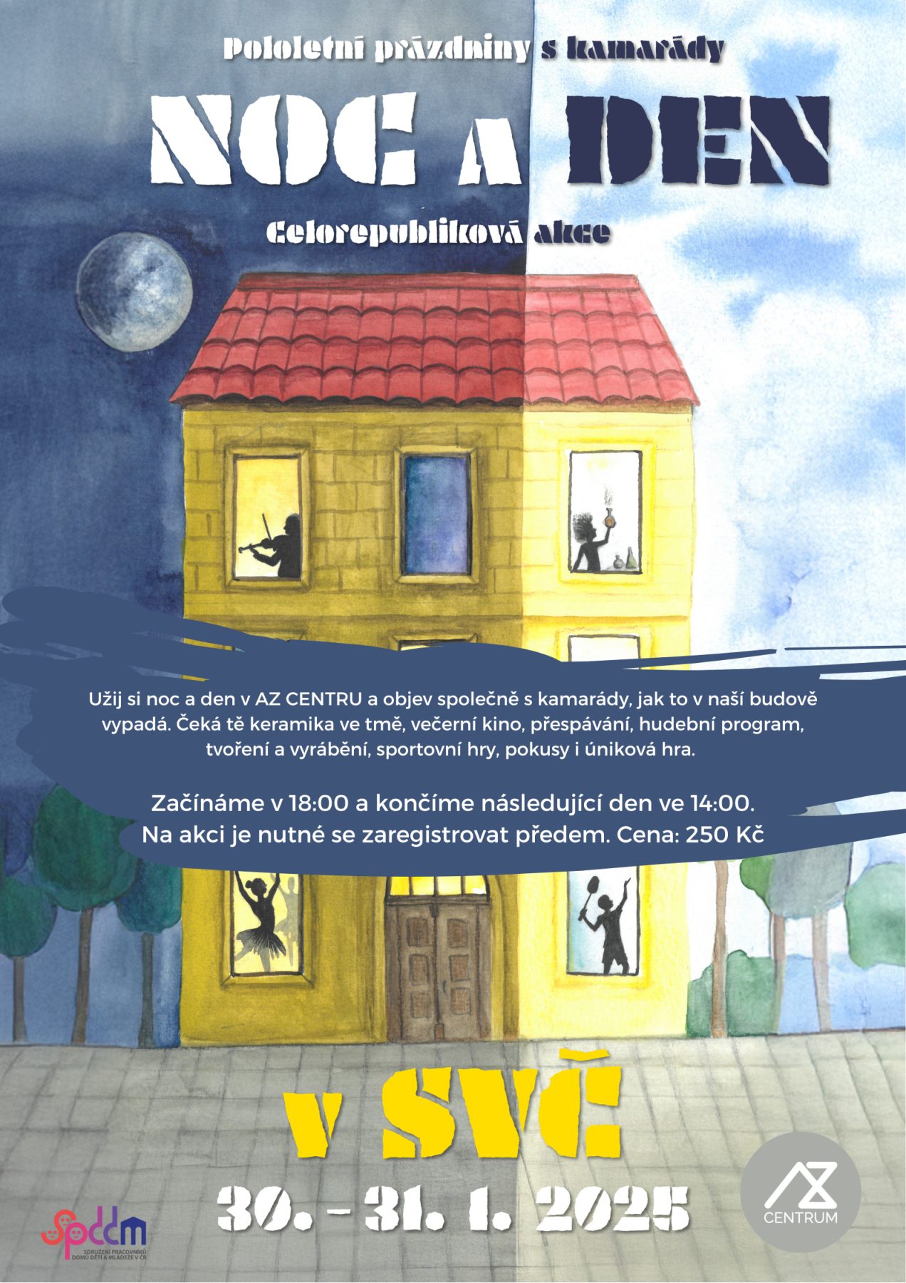 Zveme tě na společné pololetní prázdniny v AZ CENTRU. Přijď si s námi užít noc a den, vem sebou kamarády, protože je připraveno spoustu zábavy i s večerním programem.