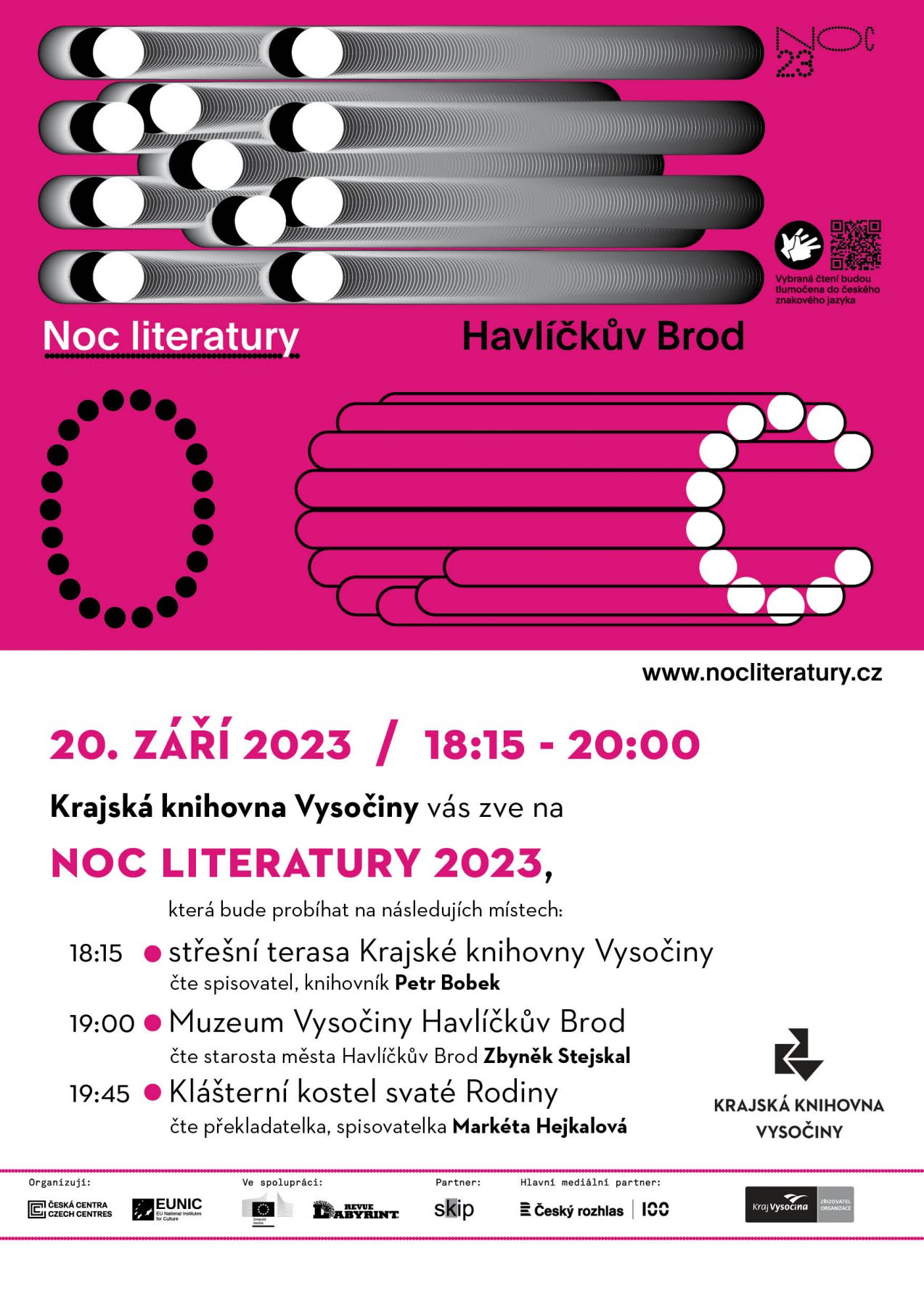 Současní autoři, netradiční místa a známé osobnosti: to je tvář série veřejných čtení – Noc literatury. Projekt organizují Česká centra ve spolupráci s EUNIC Praha (Asociace národních kulturních institutů zemí EU), zahraničními ambasádami v České republice a nakladatelstvím Labyrint.