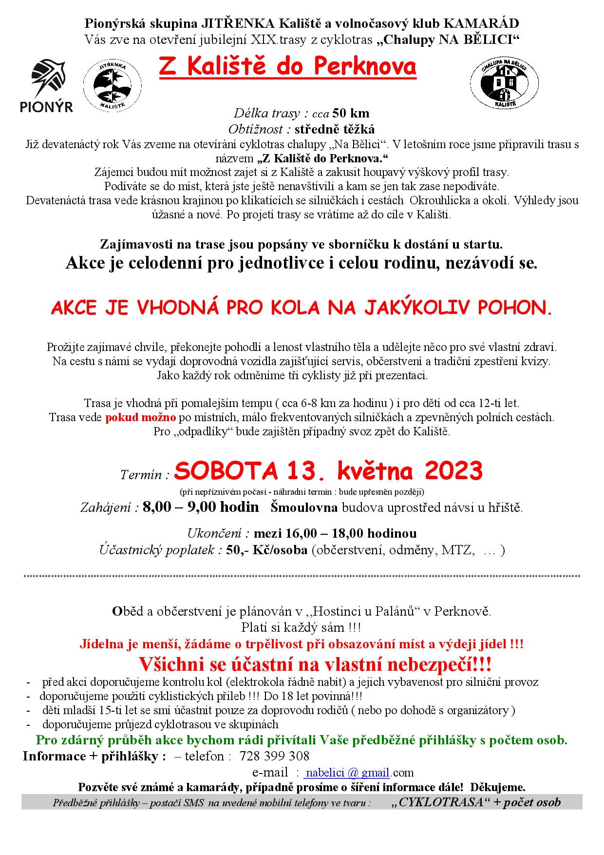 | Pořádá: | Pionýrská skupina Jitřenka Kaliště a klub Kamarád |