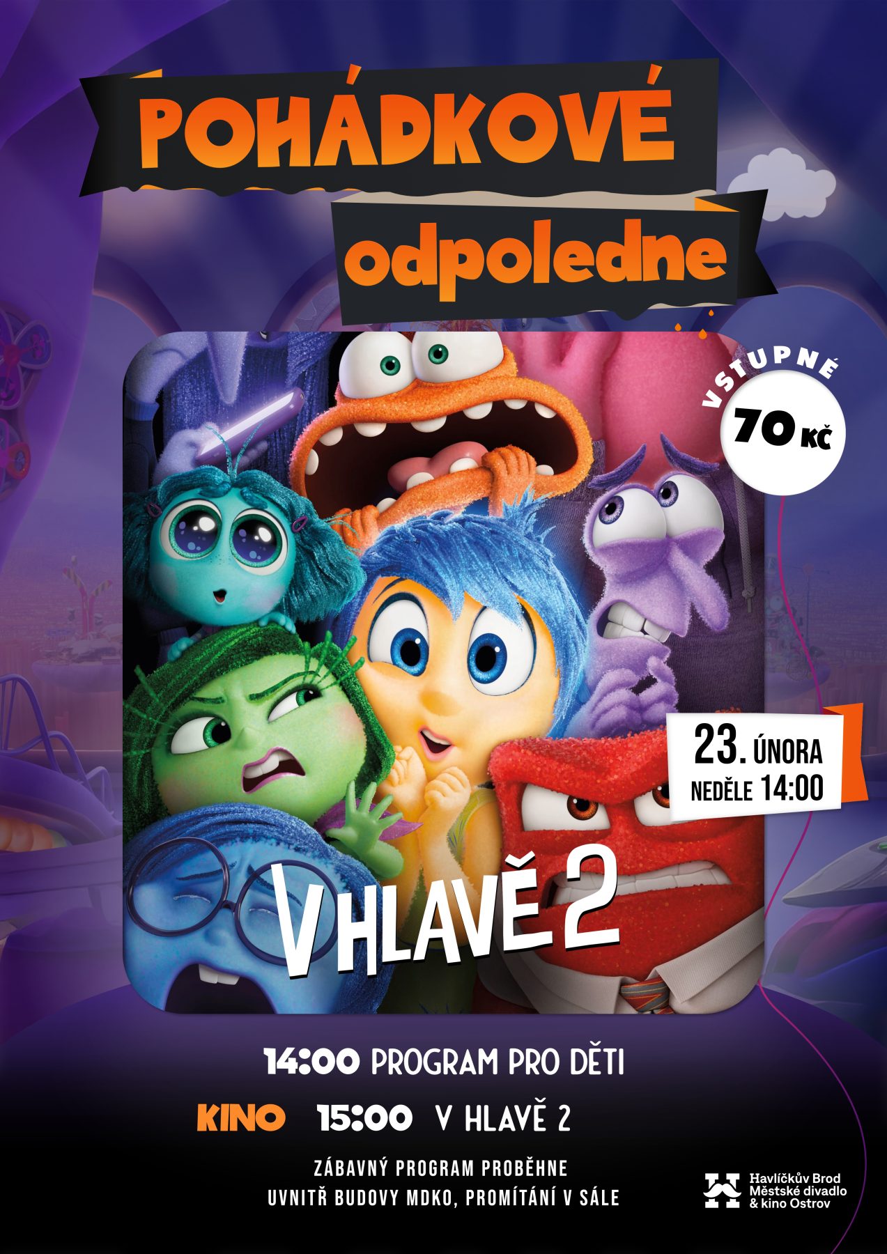 A to není vše! Po zábavném programu se společně vydáme na dobrodružnou cestu s filmem V hlavě 2 v našem kinosále od 15:00. Příběh plný emocí a smíchu, který potěší všechny věkové kategorie.