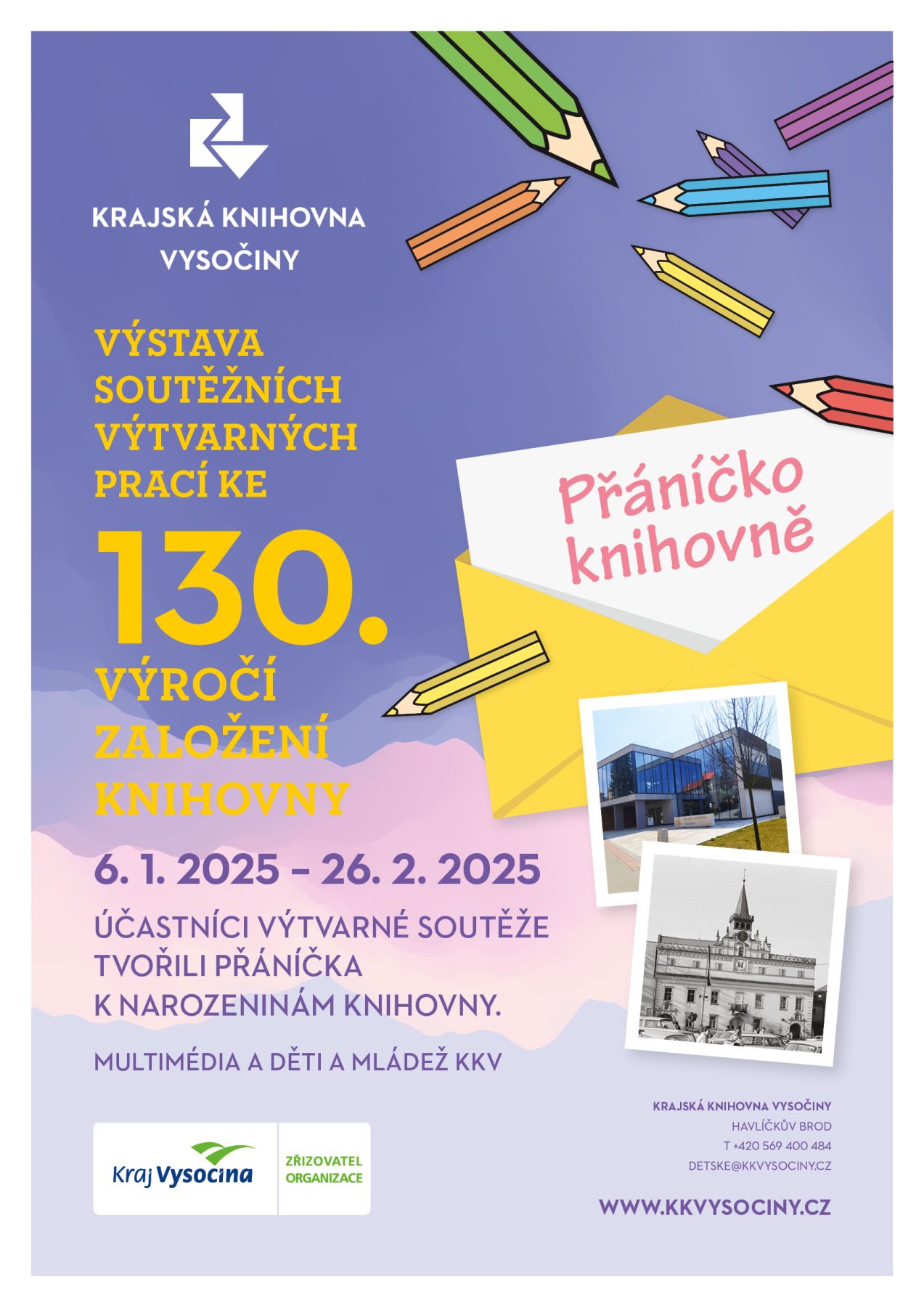 Srdečně vás zveme na originální výstavu Přáníčko knihovně, která představí výtvarné práce přihlášené do soutěže k 130. výročí založení knihovny.