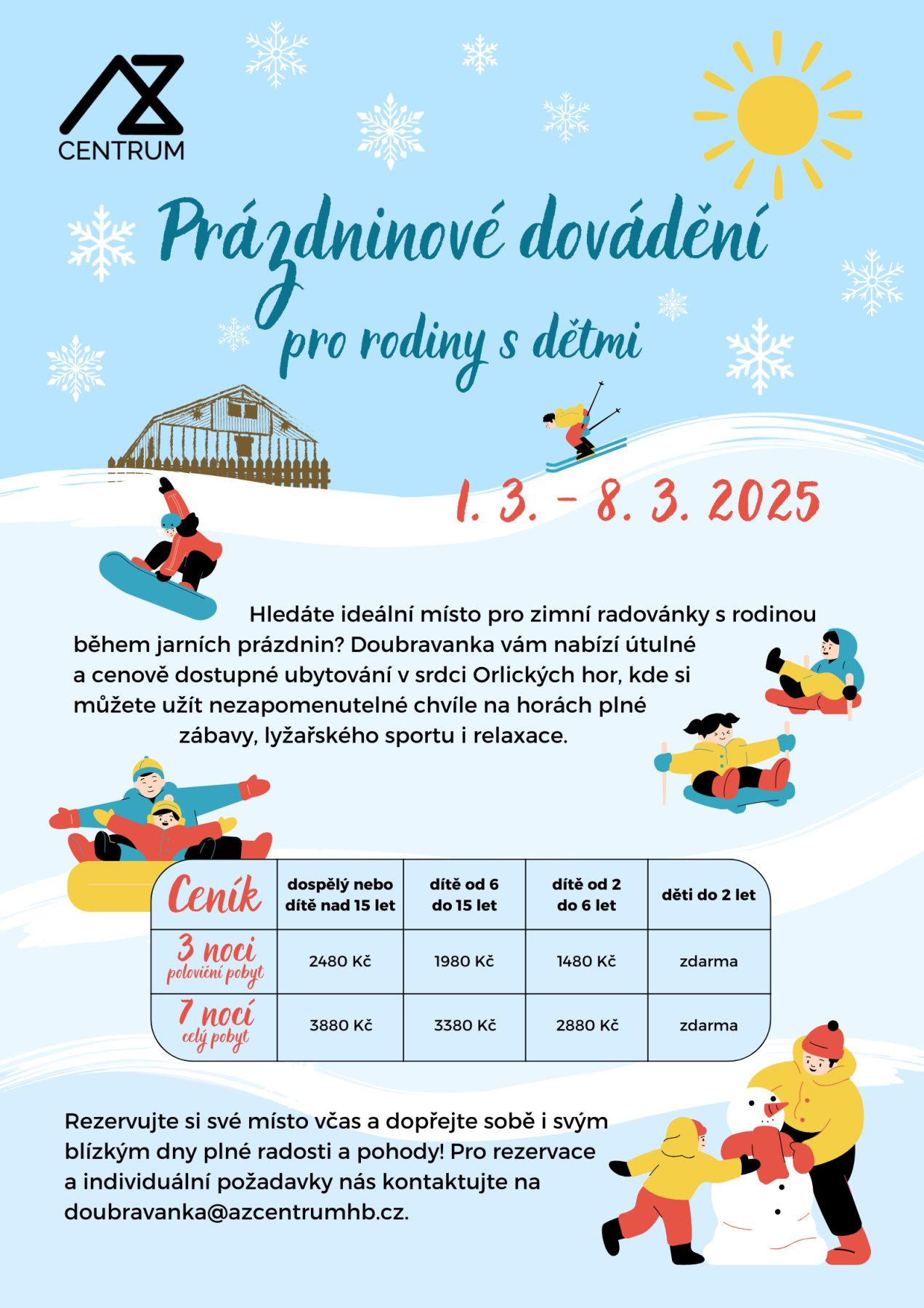 Rezervujte si své místo včas a dopřejte sobě i svým přátelům dny plné radosti a pohody! Pro rezervace a individuální požadavky nás kontaktujte na doubravanka%z%azcentrumhb.cz .