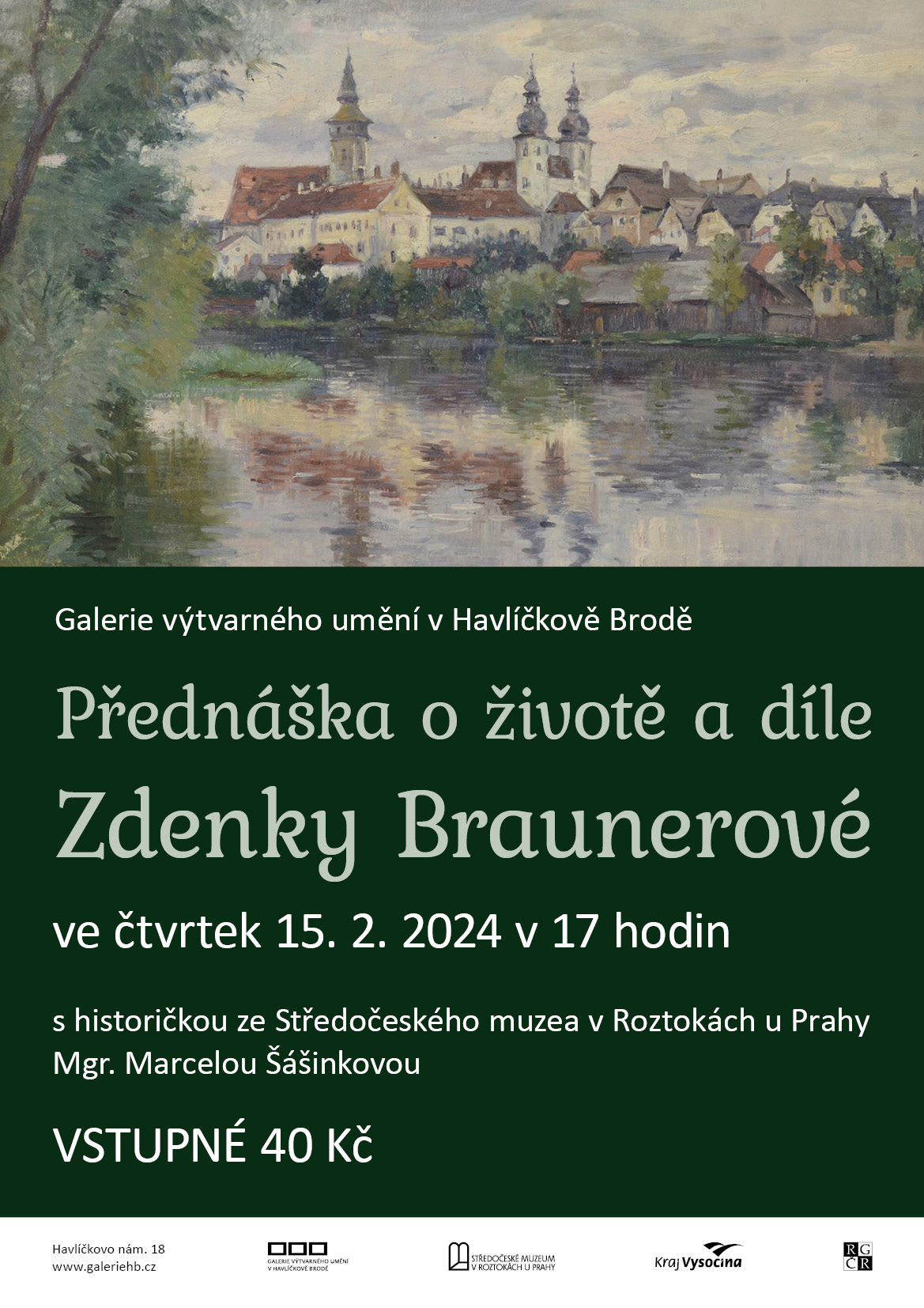 Přednáška k výstavě připravené ve spolupráci se Středočeským muzeem v Roztokách u Prahy, jež přestavuje dílo malířky, grafičky a knižní výtvarnice Zdeňky Braunerové (1858–1934), která se jako jedna z mála žen dokázala na přelomu 19. a 20. století prosadit jako samostatná profesionální umělkyně.
